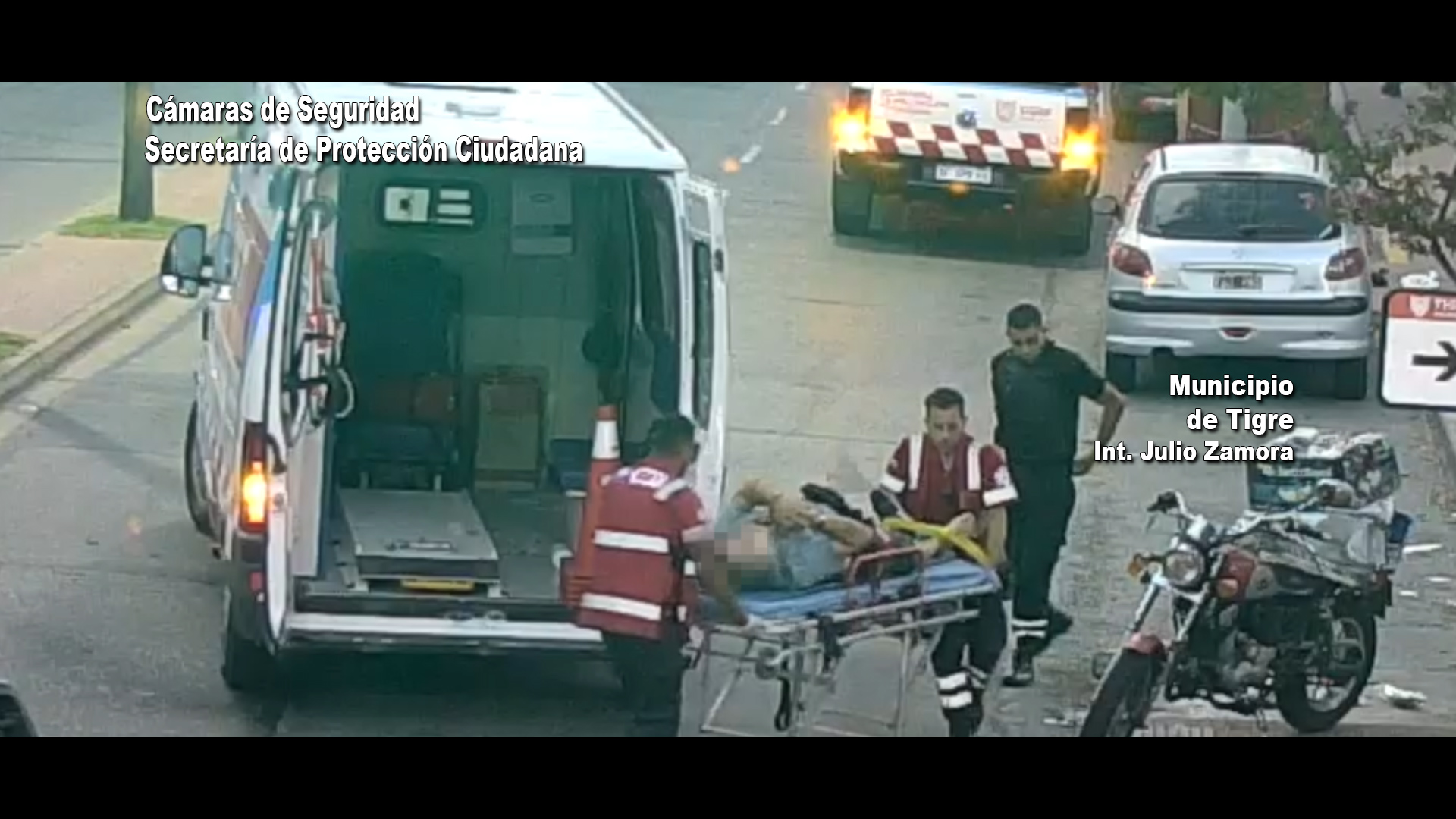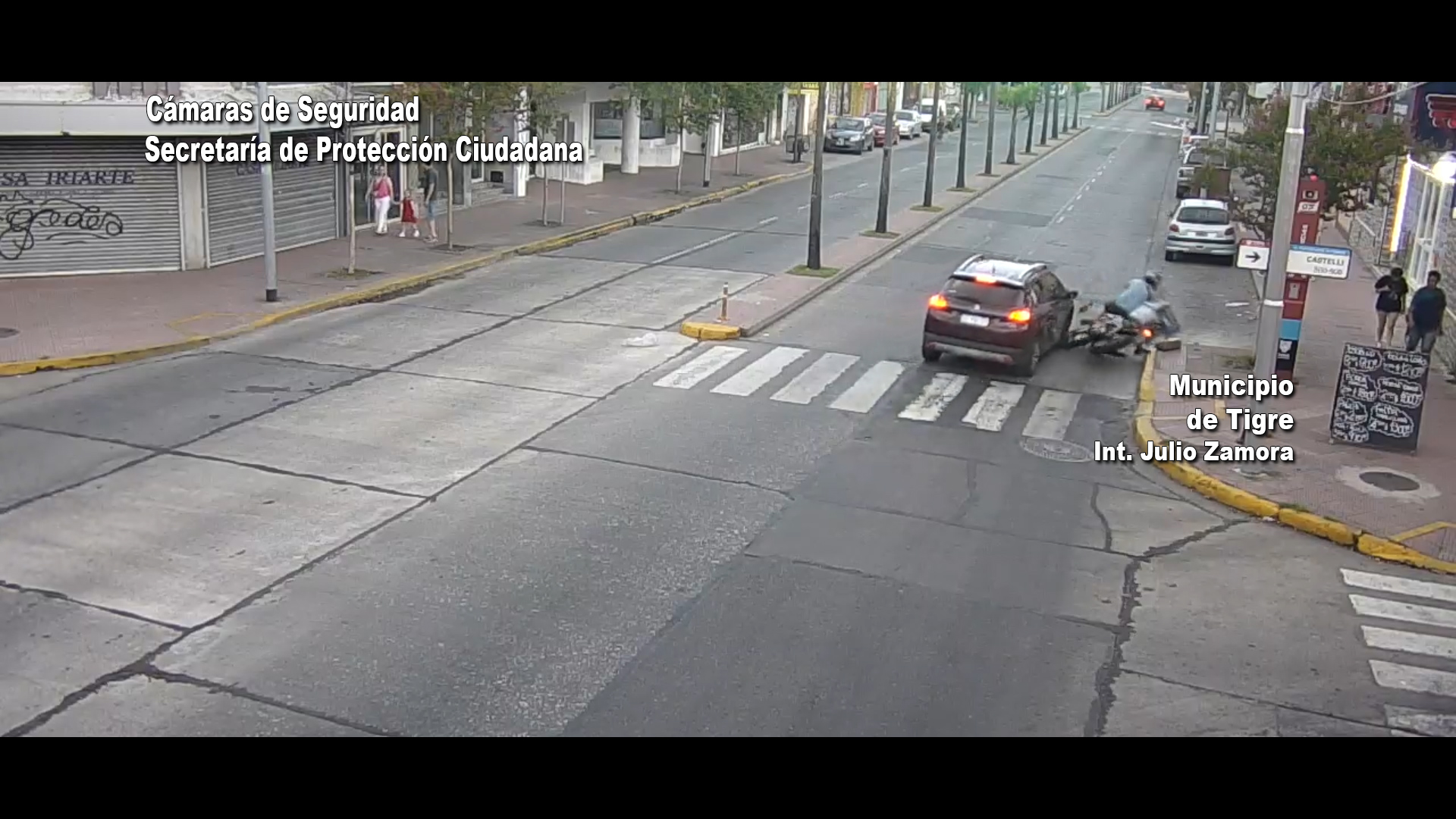 Agentes del Centro de Operaciones Tigre (COT) brindaron rápida asistencia tras un accidente entre un auto y una moto en el centro de la ciudad. Las cámaras de videovigilancia captaron el suceso.