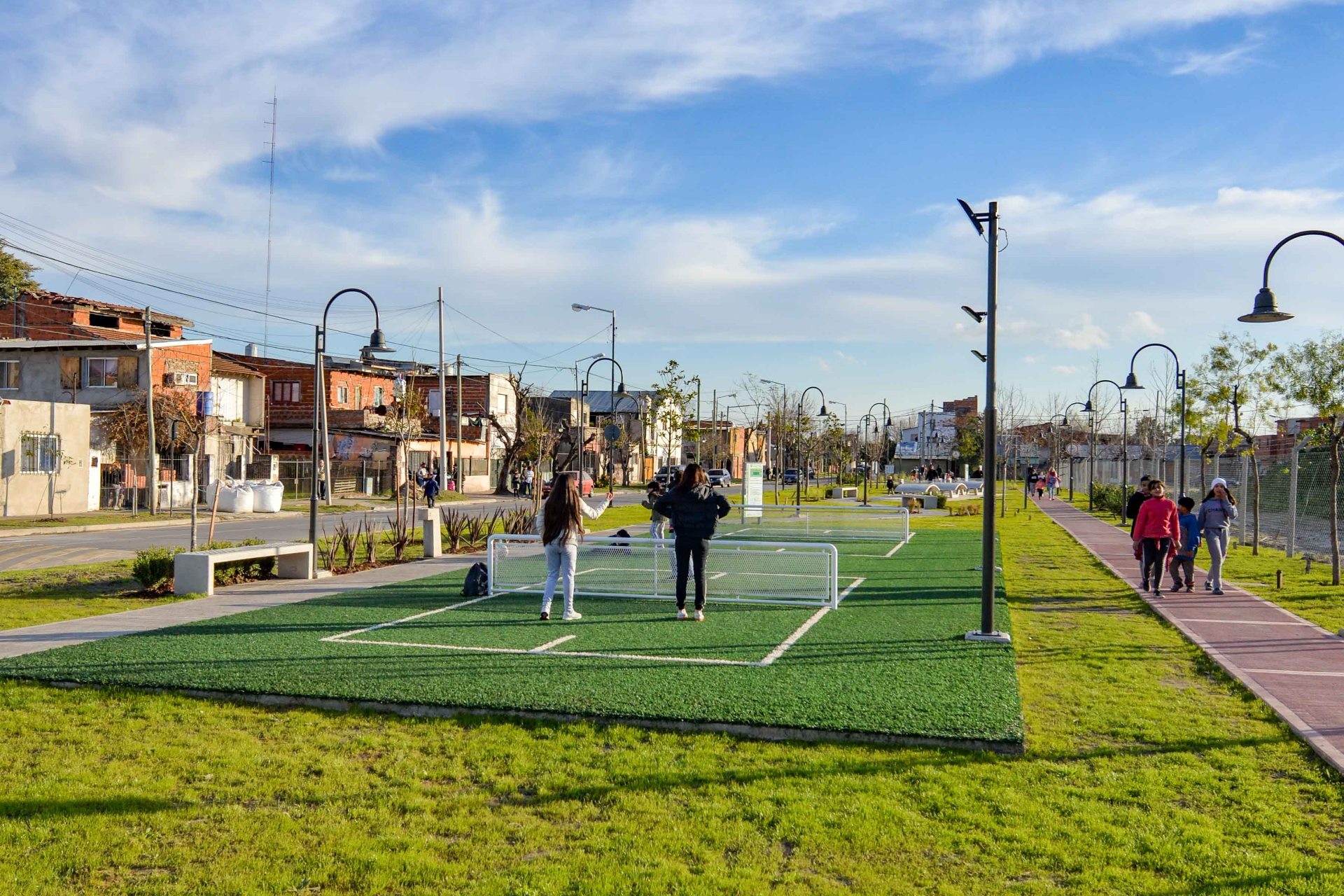El Intendente y la Secretaria y precandidata a Concejal Eva Andreotti dieron apertura al nuevo espacio público ubicado en Miguel Cané entre Paraná y José Ingenieros, de 5 cuadras en total. “Donde antes había un zanjón a cielo abierto, tenemos un parque con juegos para toda la familia con canchas de tenis, fútbol-tenis, tecball y juegos aeróbicos. Estamos agradecidos con el Gobierno Nacional por esta obra que mejora la calidad de vida de cada uno de nuestros vecinos”, dijo Juan Andreotti.