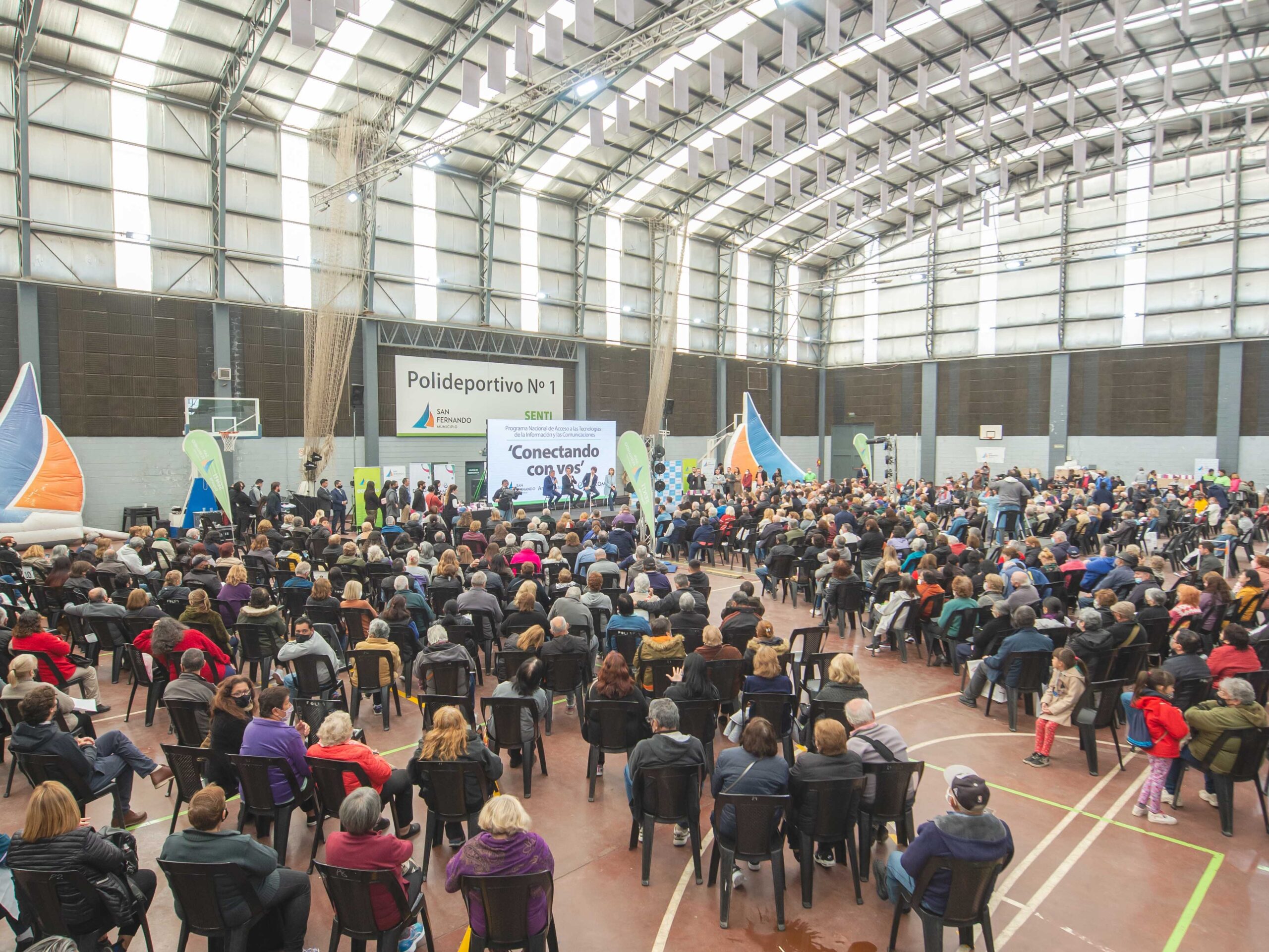 En el Polideportivo N°1 de San Fernando encabezaron un acto el Intendente Juan Andreotti; el Presidente de la Cámara de Diputados, Sergio Massa; el titular del ENACOM Claudio Ambrosini; la Diputada Nacional Alicia Aparicio y la Presidenta de AySA Malena Galmarini para anunciar importantes programas con inversión del Ente Nacional de Comunicaciones que llegarán a sanfernandinos y sanfernandinas.