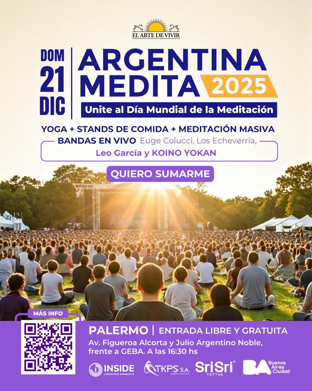 Con entrada libre y gratuita, Argentina Medita está pensado para personas de todas las edades, con o sin experiencia previa en meditación.
