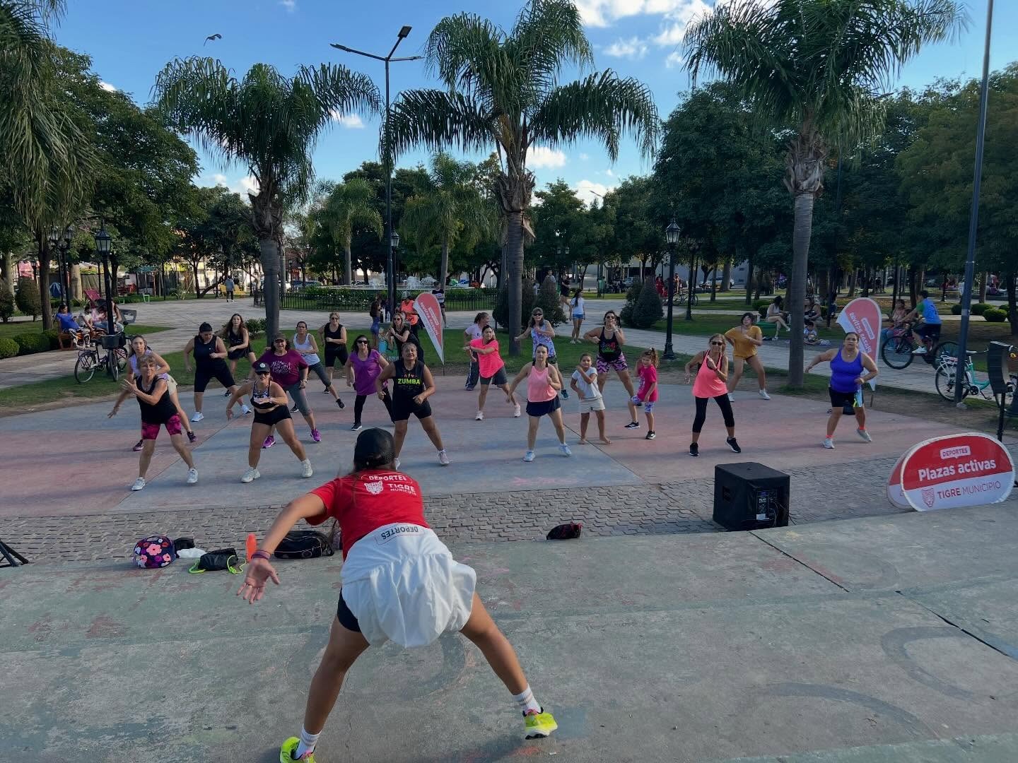 Plazas Activas es una propuesta del Municipio de Tigre en la cual se dictan clases abiertas de ritmo y zumba. Las jornadas son desarrolladas por profesores de los polideportivos del territorio.