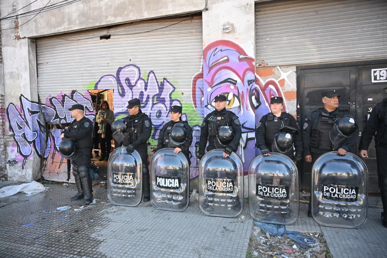 Dos detenidos en Villa Crespo en el operativo de la Policía de la Ciudad para recuperar un inmueble tomado. Fotos GCBA