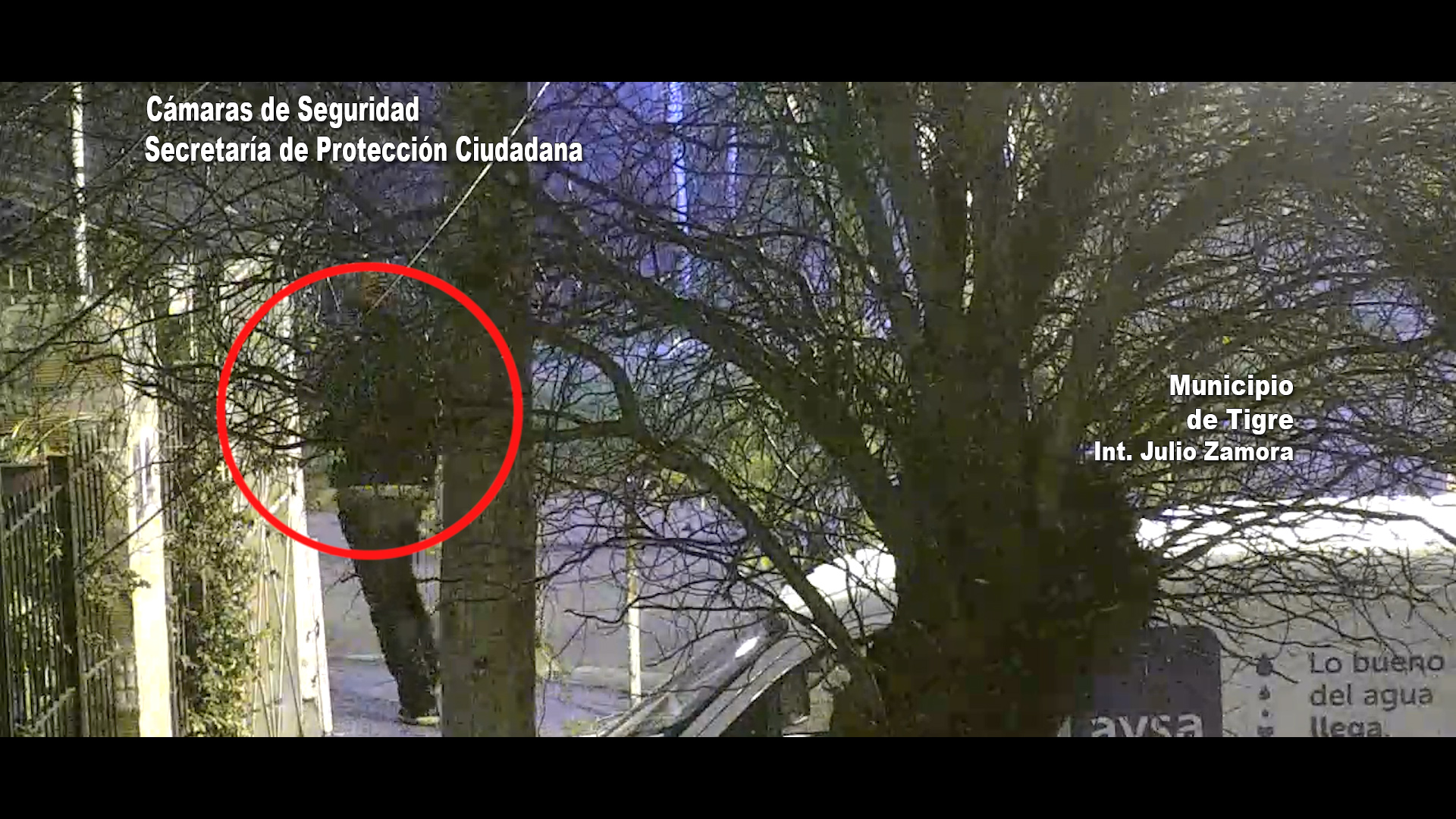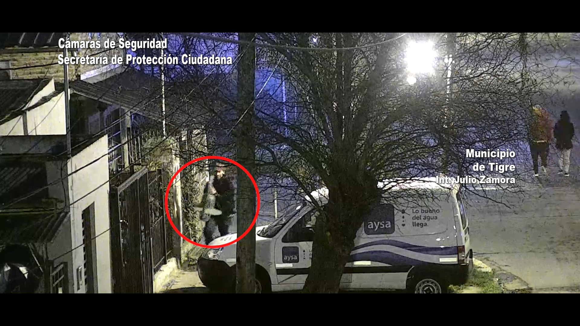 Todo comenzó cuando los operadores del centro de monitoreo visualizaron a uno de los hombres caminar por la intersección de las calles Esmeralda y 9 de Julio cargando una escalera. A los pocos minutos, se lo ve al mismo hombre con un farol en sus manos.