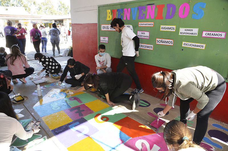 El Municipio inició el voluntariado de universitarios becados con el programa Tigre Educa 2022, en el CEC Nuestra Señora Del Valle, en Don Torcuato. La concejala Gisela Zamora acompañó a los 210 estudiantes que pintaron juegos recreativos en el suelo de la institución, como parte de su compromiso.