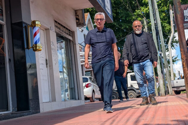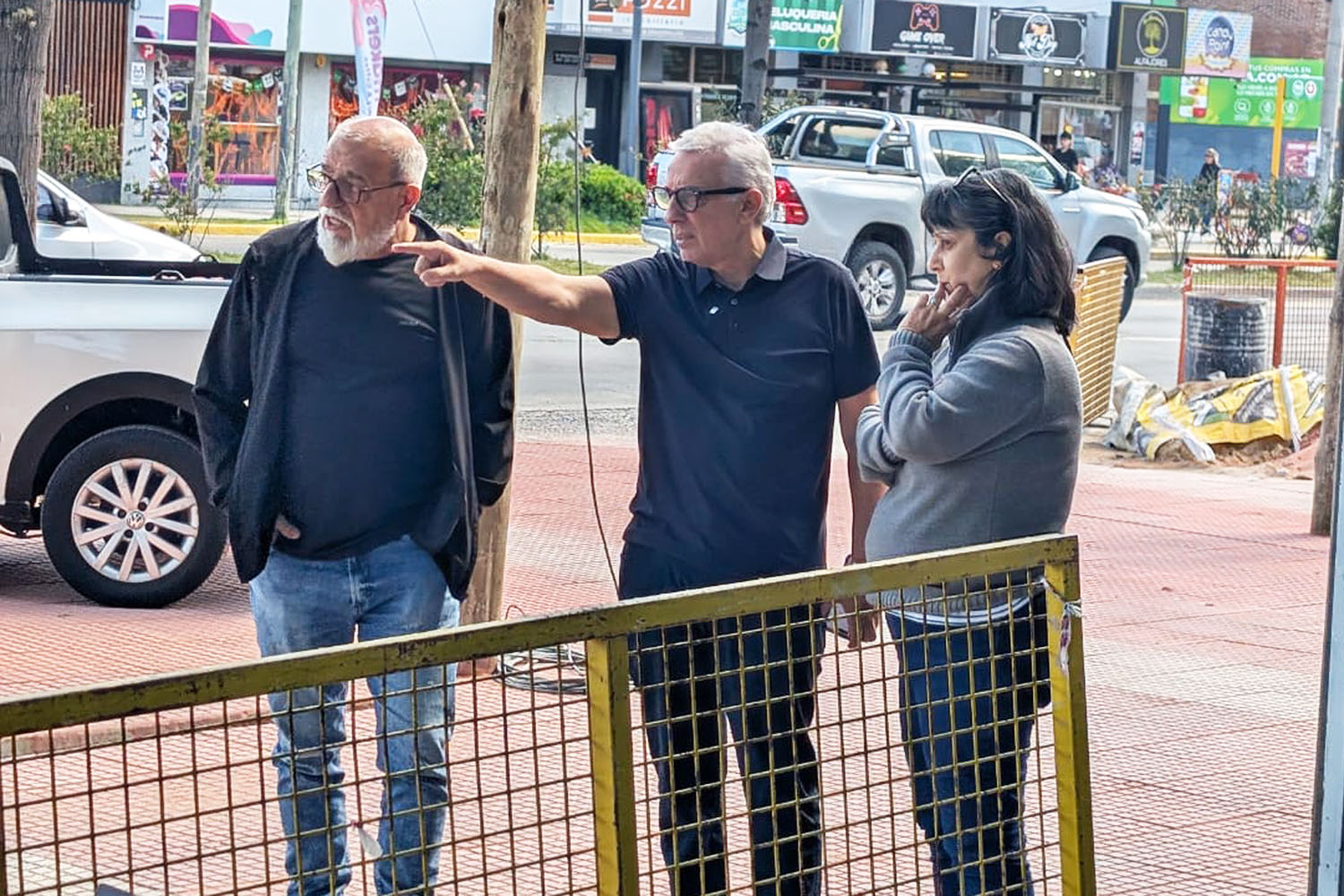 Junto a su equipo, el intendente de Tigre, Julio Zamora, monitoreó la culminación del Plan de Veredas Comerciales en General Pacheco, donde se realizó la parte final que comprende los últimos metros sobre la Av. Hipolito Yrigoyen, entre Guayaquil y José Hernandez.