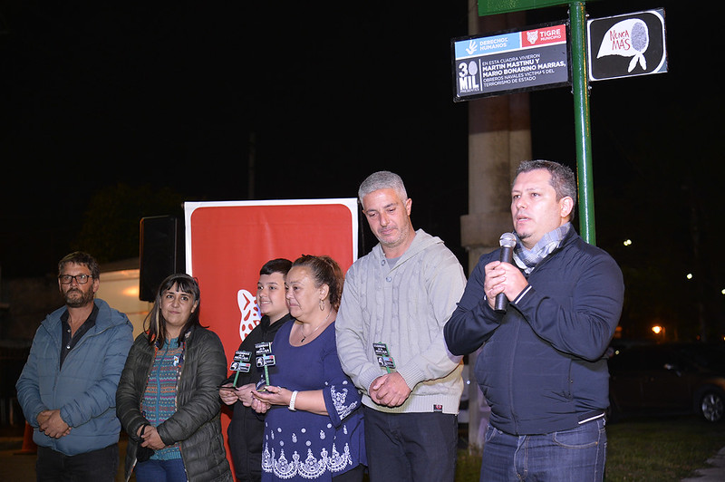 A través del programa «Esquinas de la Memoria», el Municipio de Tigre llevó adelante un homenaje para los vecinos de El Talar Mario Bonarino Marras y Martin Mastinu, quienes fueron detenidos y secuestrados por la dictadura cívico-militar. Autoridades locales y familiares de las víctimas participaron del acto realizado en la intersección de las calles Gelly y Obes y Canadá, donde se colocó una nueva señalética vial.