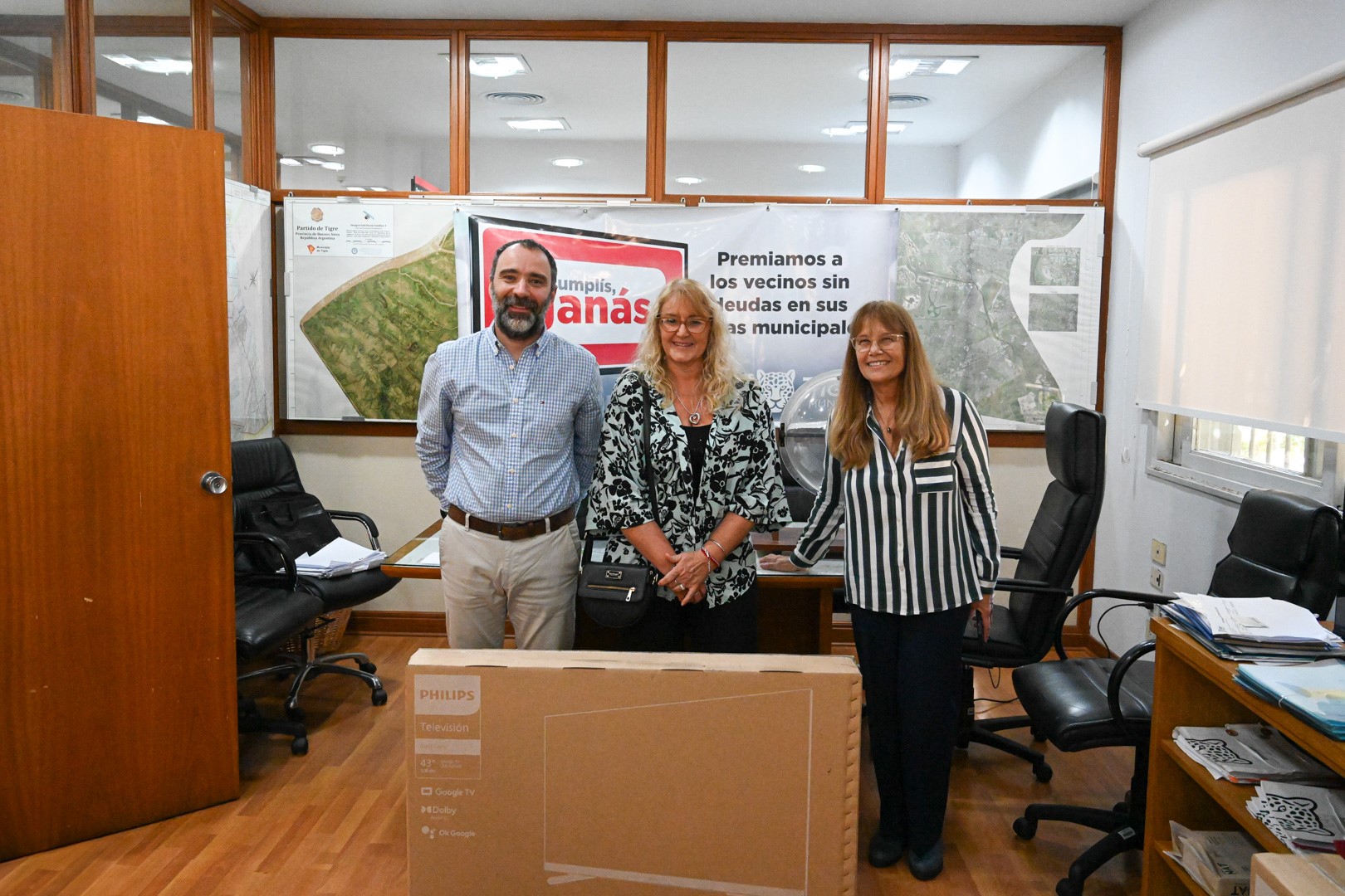 A través de esta iniciativa, la gestión local entregó televisores LED a contribuyentes de Don Torcuato, Benavídez y el centro de la ciudad correspondientes a los meses de diciembre, enero y febrero. El objetivo es estimular el compromiso tributario de la comunidad.