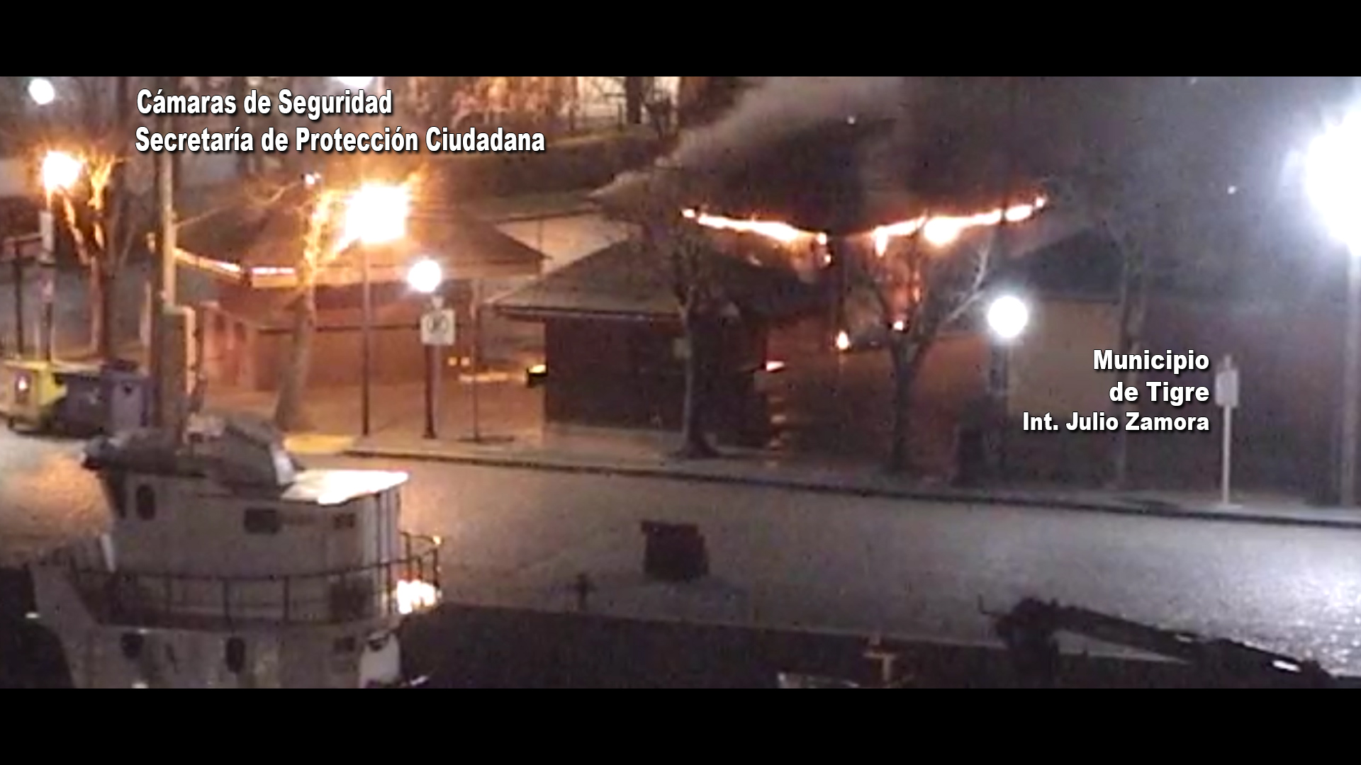El Sistema de Protección Ciudadana de Tigre actuó rápidamente para sofocar un incendio en el Puerto de Frutos. El hecho fue registrado por las cámaras de videovigilancia del distrito.