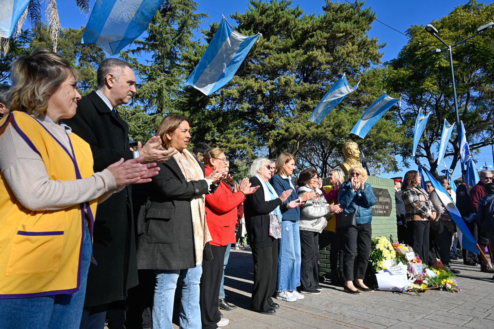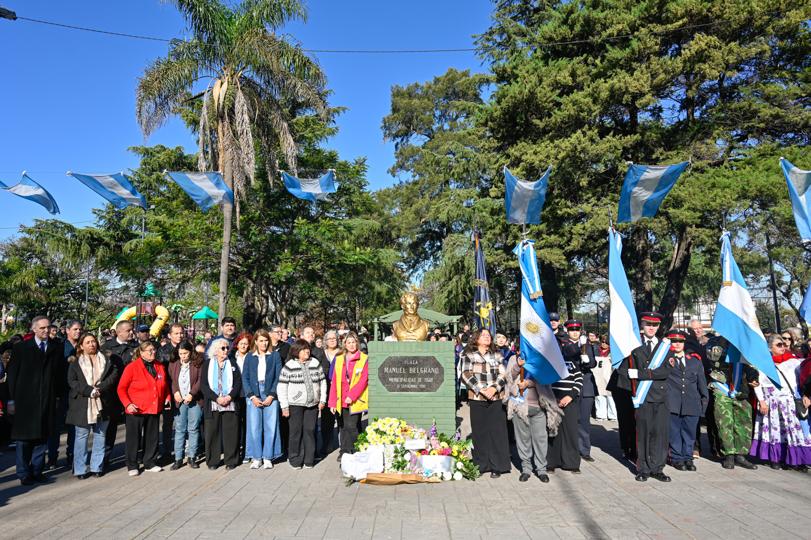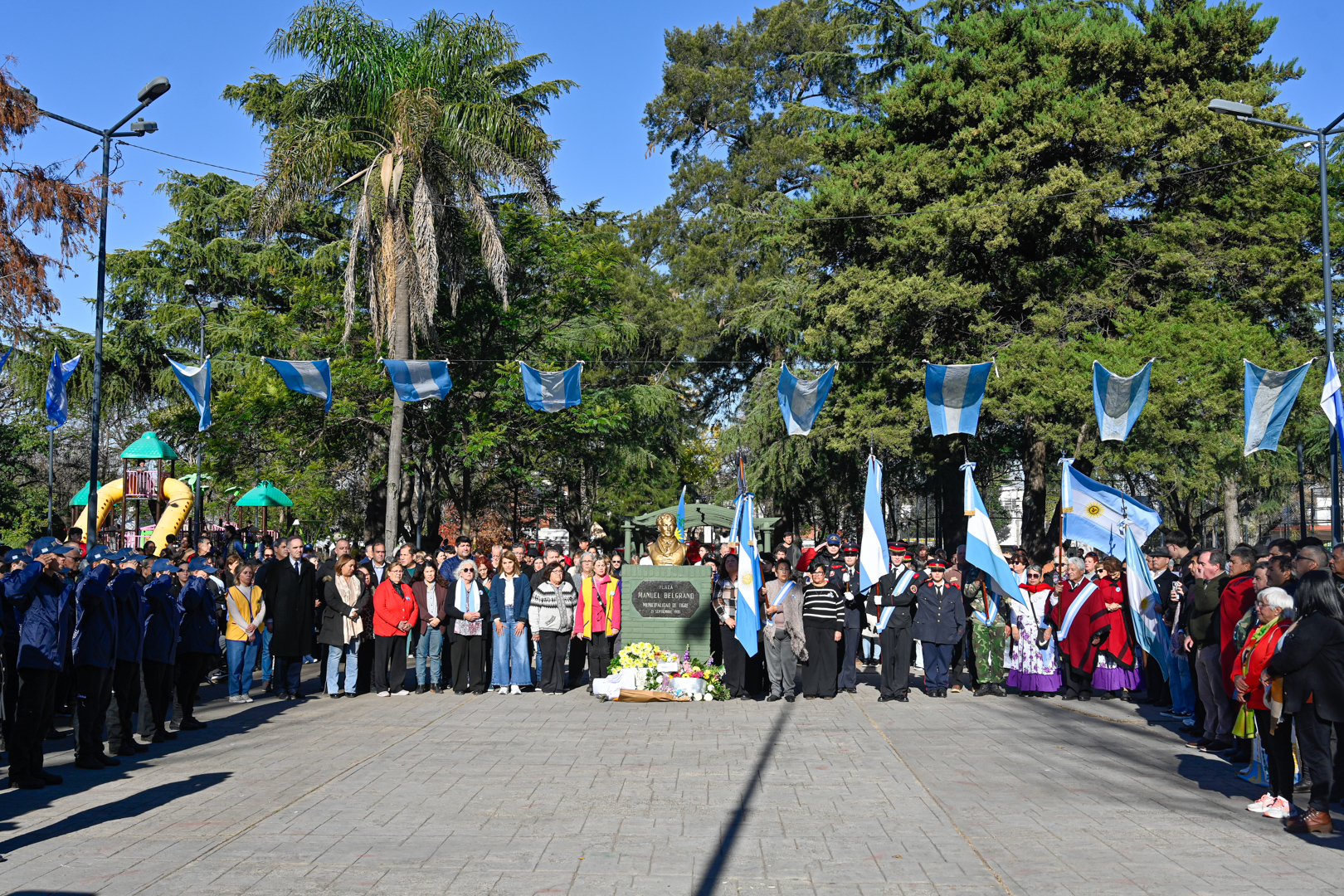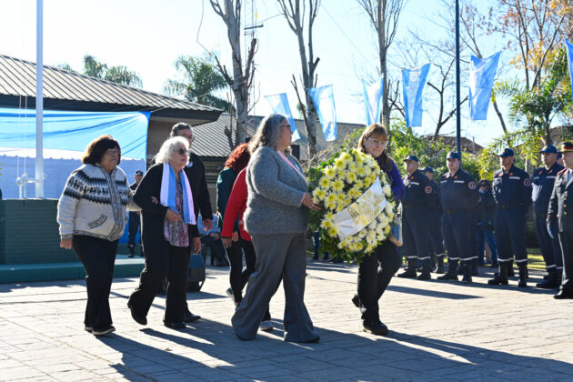El evento se desarrolló en la plaza General Manuel Belgrano junto a decenas de vecinos y entidades de la localidad. El encuentro contó con ofrendas florales, entrega de distinciones a personalidades destacadas y shows de música en vivo de artistas locales.