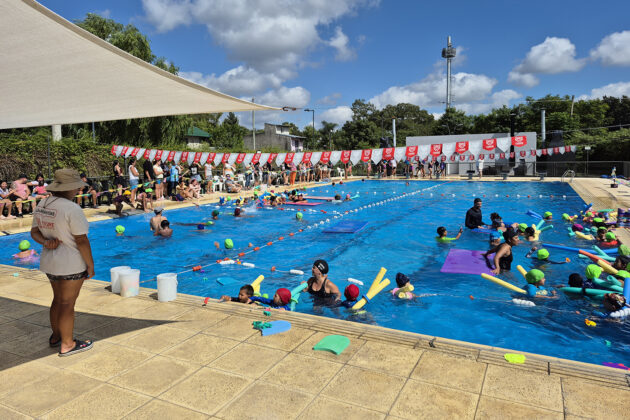 Durante la jornada, los participantes realizaron muestras acuáticas frente a padres y familiares, acompañados por profesores y profesoras. La actividad permite visibilizar el trabajo que se desarrolla durante la colonia, como también fortalecer el vínculo entre los equipos docentes y las familias.