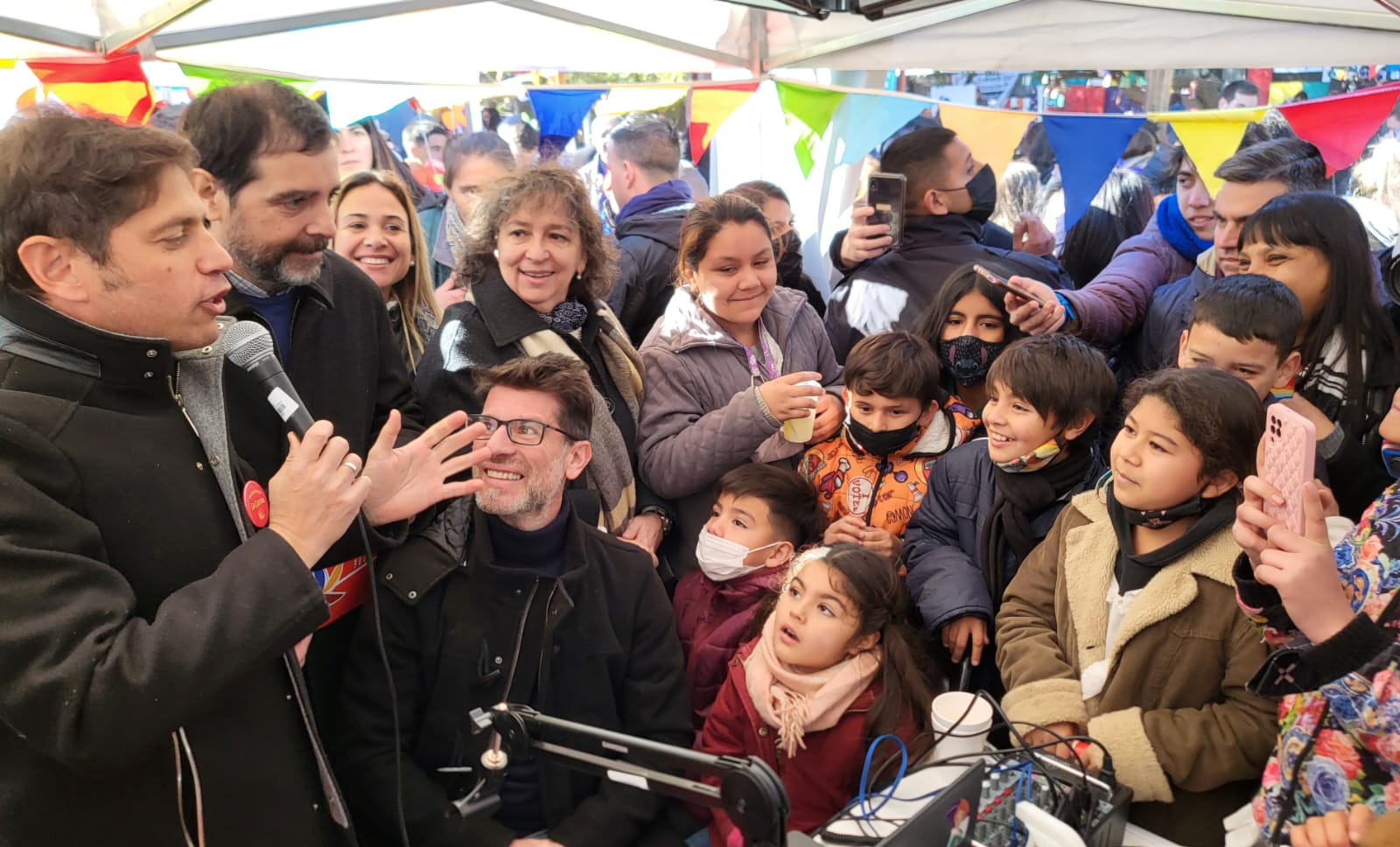 El intendente de San Martín, Fernando Moreira, y el gobernador de la Provincia de Buenos Aires, Axel Kicillof, compartieron una jornada de actividades infantiles en la Biblioteca Popular La Carcova, en el marco del Día Mundial contra el Trabajo Infantil que se conmemora el domingo.