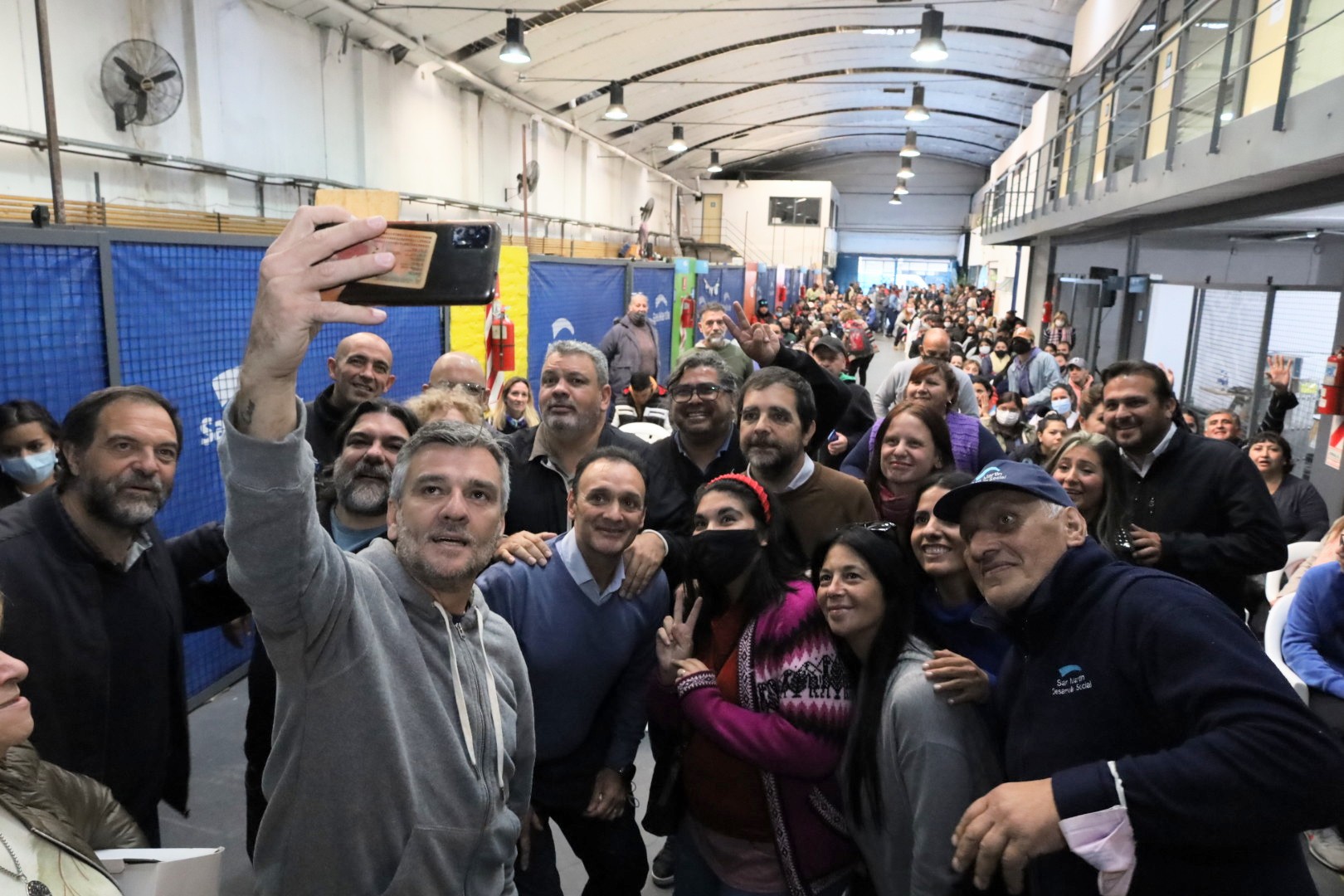 Durante la actividad en el Centro de Desarrollo Productivo San Martín Emprende, el Jefe Comunal destacó: “Es una enorme alegría poder hacer esta entrega de herramientas y materiales que le permiten a vecinas y vecinos crearse su propio empleo, poniendo en marcha sus proyectos y sueños”.