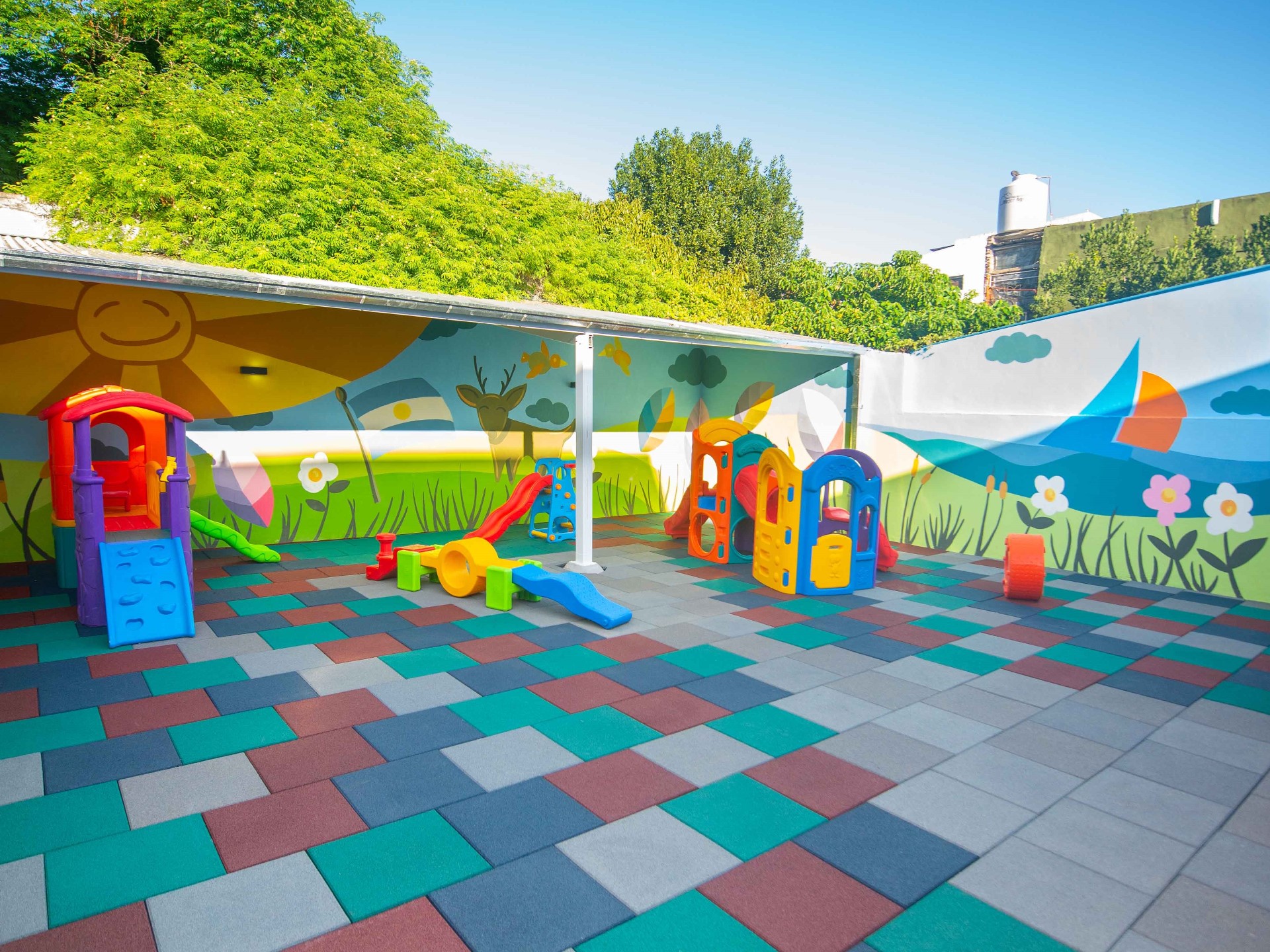 Entre otros trabajos, la obra de renovación integral incluyó aulas con nuevo mobiliario, cocina, baños y un parque de juegos móviles con piso blando y un mural del Ciervo de los Pantanos.
