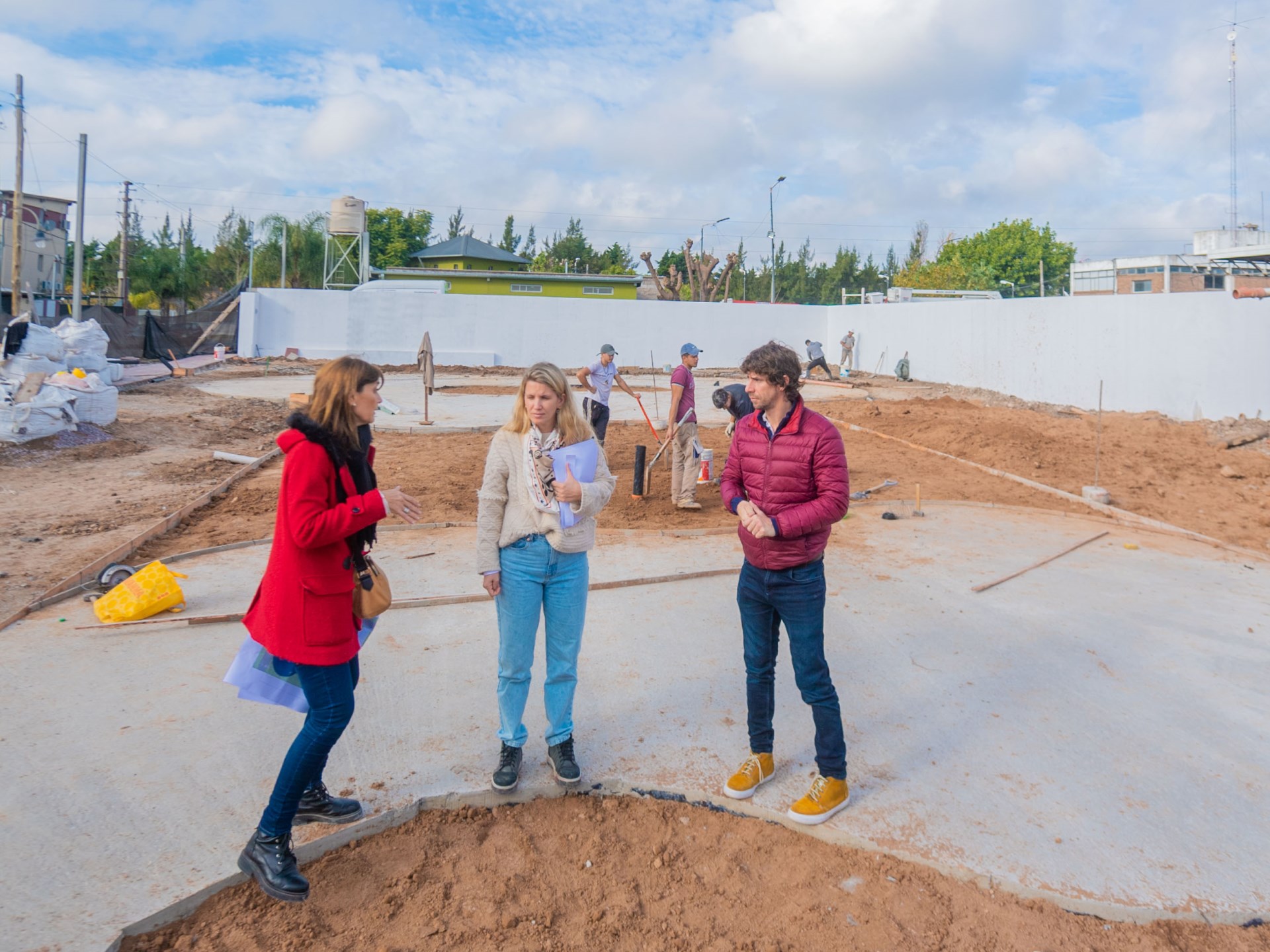 También presente estaba la Secretaria de Obras Públicas, Cecilia Tucat, quien detalló: “La idea es generar un espacio con área verde, un canil para mascotas con la particularidad de tener piso drenante y un sector de juegos temáticos. Se construyó un muro perimetral para separarla de los edificios contiguos, sobre los que se crearán murales que se identifiquen con la plaza, y un sector de juegos nuevos”.