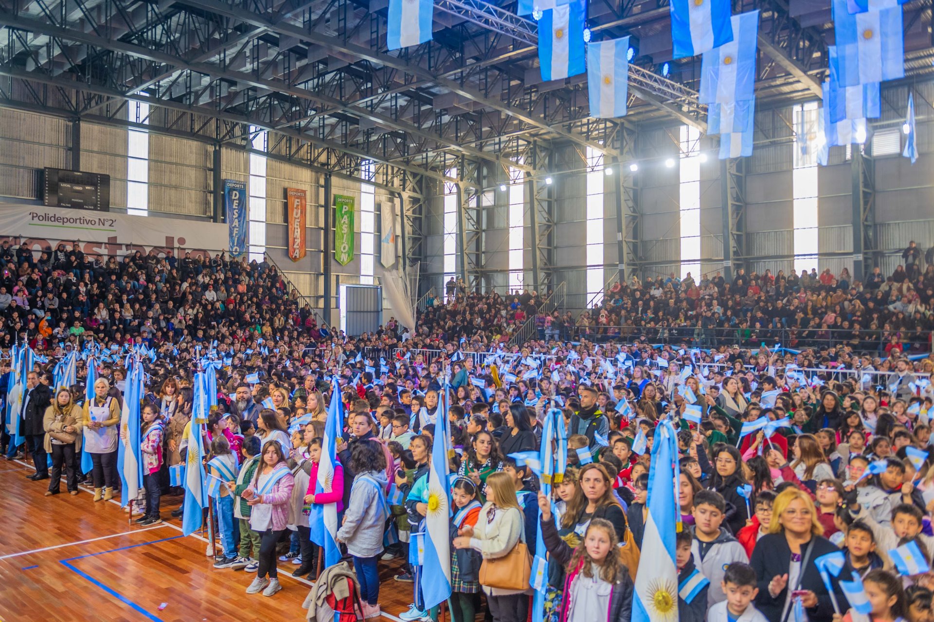 En una jornada inolvidable para cerca de 2.500 alumnas y alumnos de escuelas públicas y privadas de San Fernando, el Municipio compartió un gran acto realizado en el Microestadio del Polideportivo N°2 donde el Intendente Juan Andreotti tomó a los estudiantes su promesa de lealtad, amor y respeto a la Bandera Nacional, acompañado de la Diputada Nacional Alicia Aparicio.