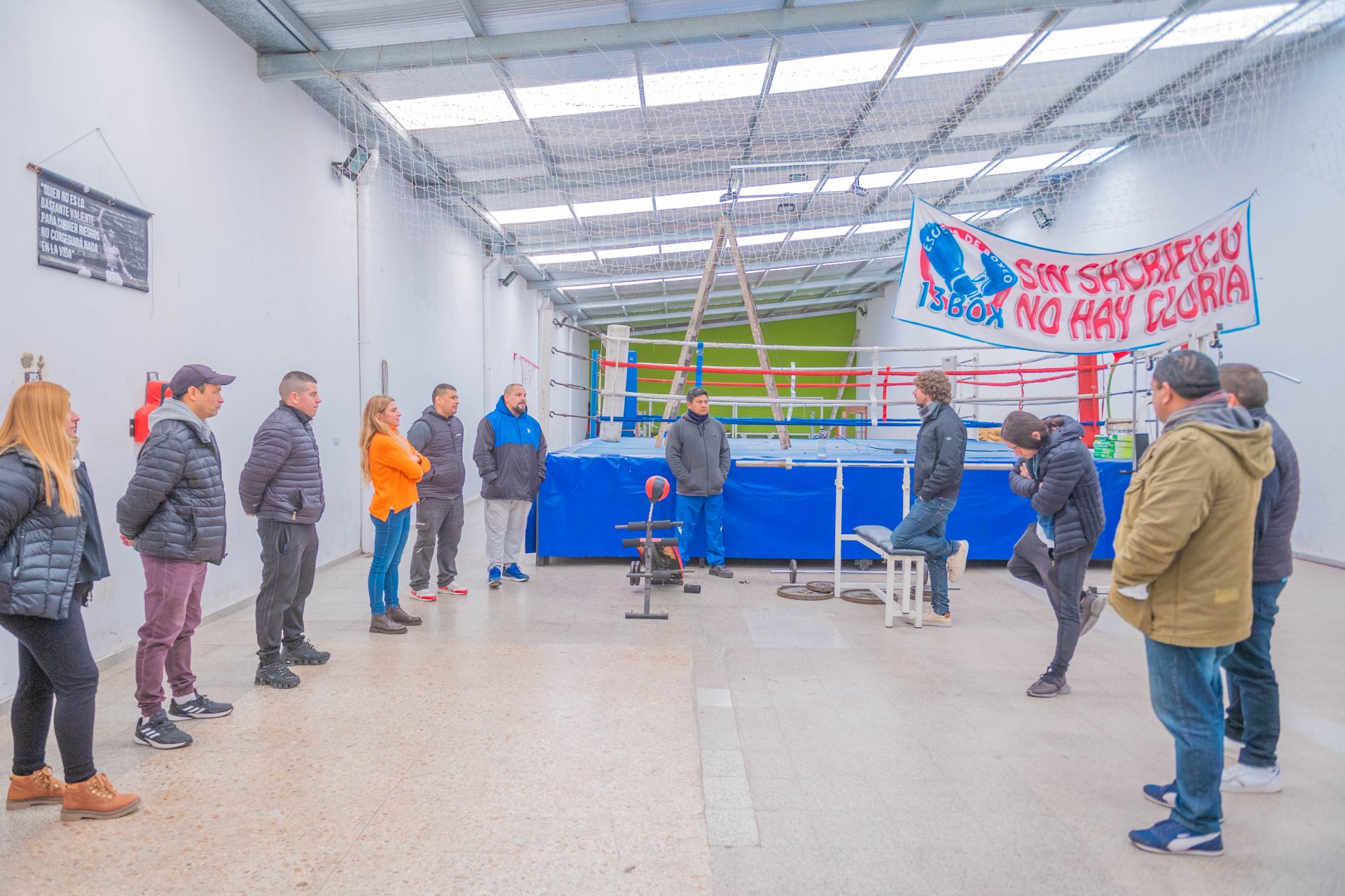 El Intendente Juan Andreotti visitó la institución junto a sus directivos y acompañado de la Secretaria municipal de Desarrollo Social, Educación y Medio Ambiente, Eva Andreotti; la Secretaria de Obras Públicas, Cecilia Tucat; y el Concejal Carlos Bergandi. ’13 de Julio-Alvear’ surge de la fusión de la popular escuela de fútbol ‘La Alvear’ con el histórico club de boxeo ‘13 de Julio Canal’, cuya sede fue renovada años atrás por el Municipio y en donde se encontraron los funcionarios en primer lugar.