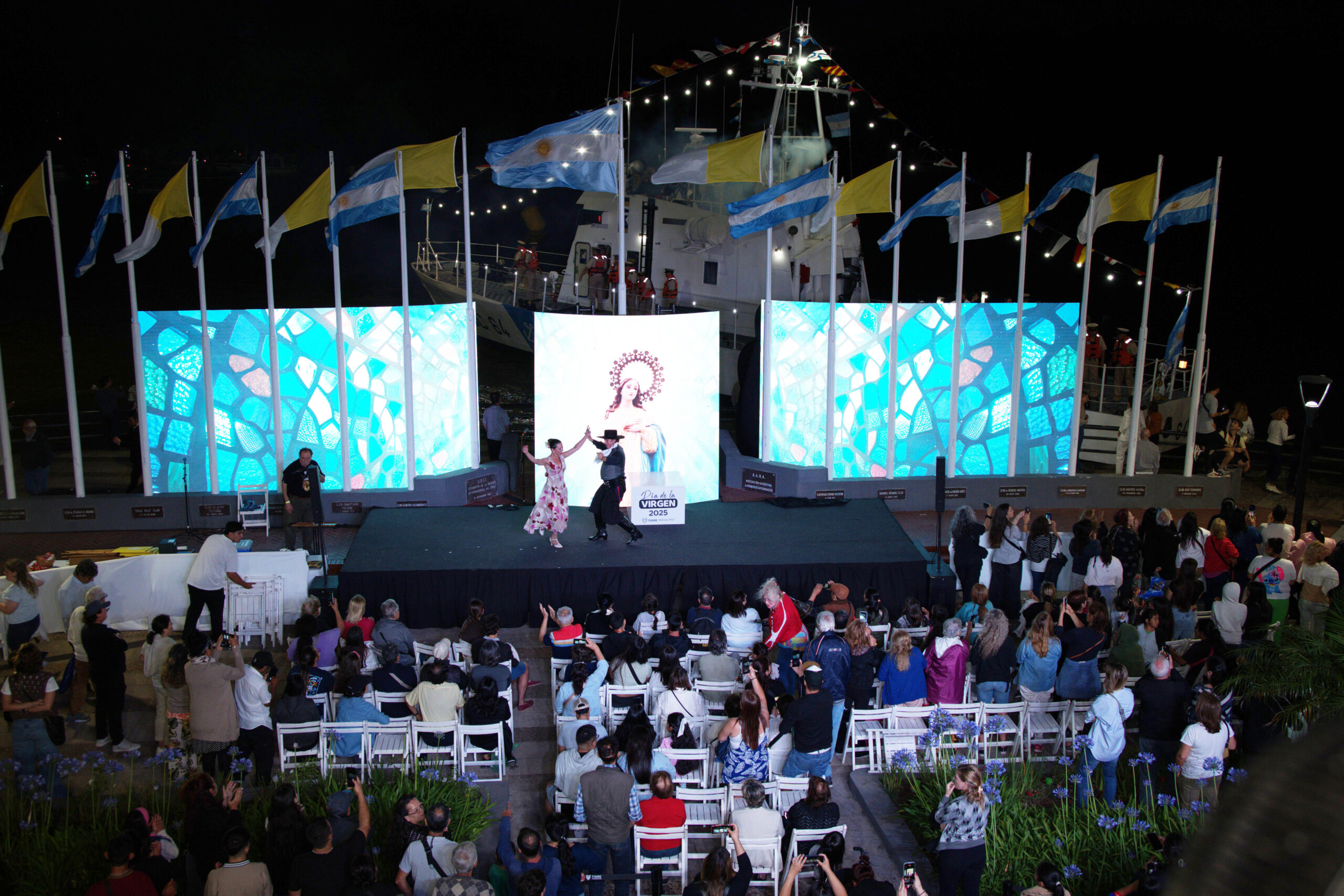 Acto seguido, se dio lugar al momento más emotivo del encuentro con la emblemática procesión náutica por el río Luján, encabezada por la embarcación de la Prefectura Naval Argentina, que trasladó la figura de la Virgen en compañía de las autoridades comunales, eclesiásticas y de la fuerza. Como todos los años, el punto de partida y llegada fue el muelle de Prefectura, en el característico recorrido desde el Puerto de Frutos hasta el Museo de Arte de Tigre (MAT).