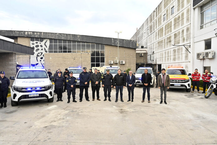 El intendente comunal y el Ministro de Seguridad de la Provincia de Buenos aires, encabezaron el acto de incorporación de 5 vehículos Volkswagen Amarok para la Policía de la Provincia; 15 nuevos efectivos que se han formado para patrullaje; 10 motos para el Grupo de Prevención Motorizada (GPM) y dos drones de última generación, con fondos del Plan de Inversión Provincial para municipios. Además, con inversión propia, el Municipio adquirió una nueva camioneta para Defensa Civil.