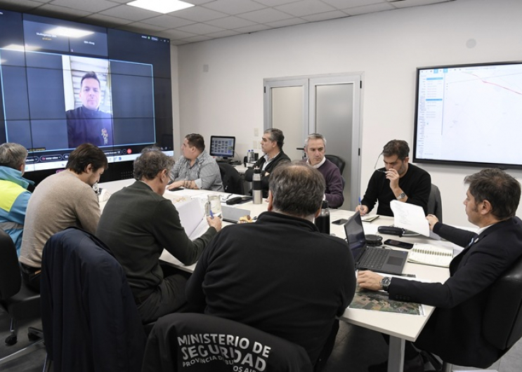 El gobernador de la provincia de Buenos Aires, Axel Kicillof, encabezó este martes un nuevo comité de emergencia para abordar junto a ministros e intendentes el estado de situación de cada municipio y el despliegue de la asistencia para las familias afectadas por el temporal. Fue en el Centro Operativo del Ministerio de Seguridad bonaerense en Puente 12, La Matanza, junto al ministro Javier Alonso y sus pares de Gobierno, Carlos Bianco; de Infraestructura y Servicios Públicos, Gabriel Katopodis; de Desarrollo de la Comunidad, Andrés Larroque; y de Salud, Nicolás Kreplak.