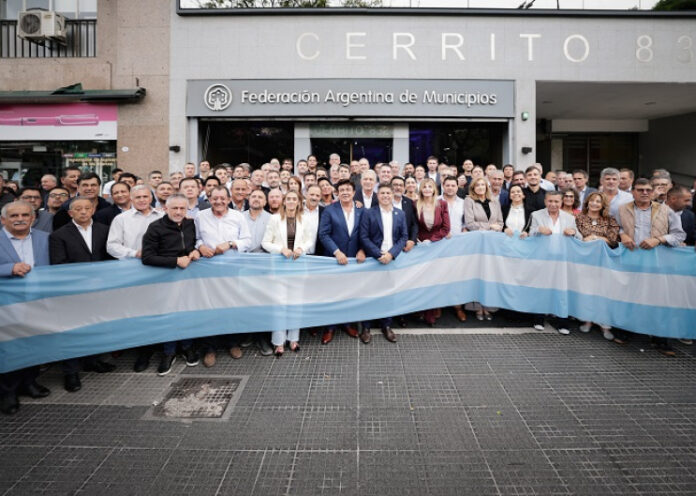 El gobernador Axel Kicillof se reunió este martes con más de un centenar de dirigentes, legisladores e intendentes de la Federación Argentina de Municipios (FAM) que reclamaron en el Ministerio de Economía de la Nación la reactivación de obras paralizadas y la transferencia de fondos adeudados por el Gobierno nacional. Fue en la sede de la FAM, en la Ciudad Autónoma de Buenos Aires, junto al gobernador de La Rioja, Ricardo Quintela; el ministro de Gobierno, Carlos Bianco; de Infraestructura y Servicios Públicos, Gabriel Katopodis; y el presidente de la FAM e intendente de La Matanza, Fernando Espinoza.