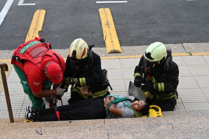 El simulacro se realizó en el estacionamiento de los tribunales federales de Comodoro Py, una vez finalizado el horario de atención al público, y recreó un escenario de la caída de un helicóptero con múltiples víctimas.