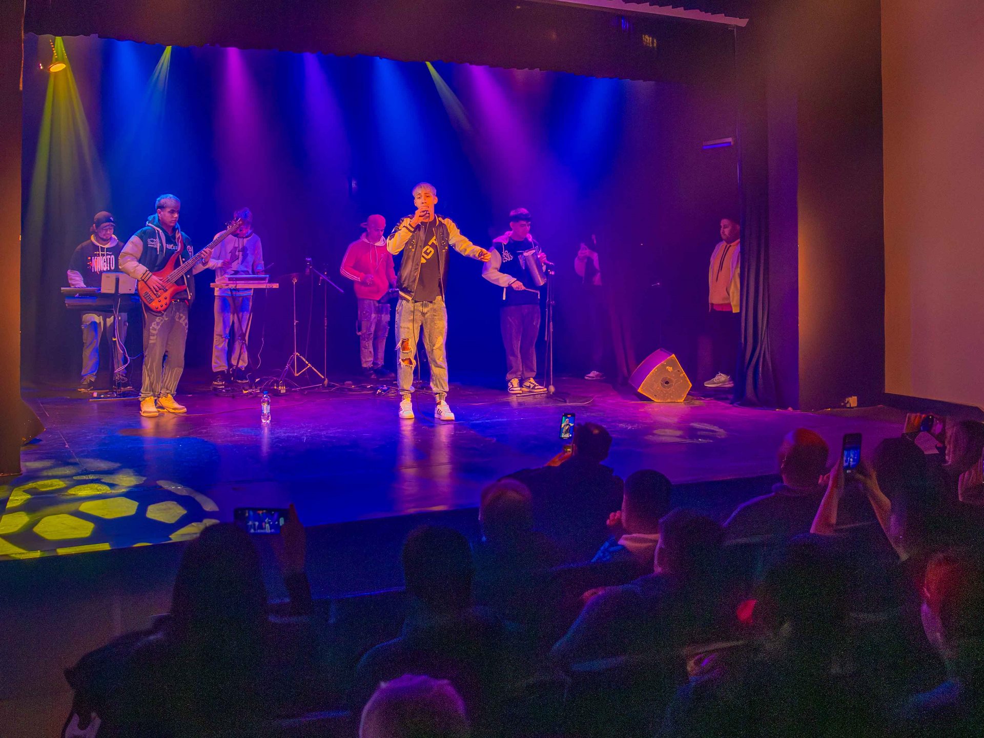 “Kingto”, la banda de San Fernando destacada en las redes sociales por sus videos tocando cumbia en la vereda de su barrio, brindó un show en el Teatro Martinelli de Victoria, con dos funciones. Tocaron famosas canciones de cumbia de otros artistas y su último tema ‘El Pronóstico’. Acompañaron el evento el Director Gral. de Cultura y Turismo, Rony Rodríguez Núñez; y la Directora del Teatro Martinelli, Verónica Heguy.