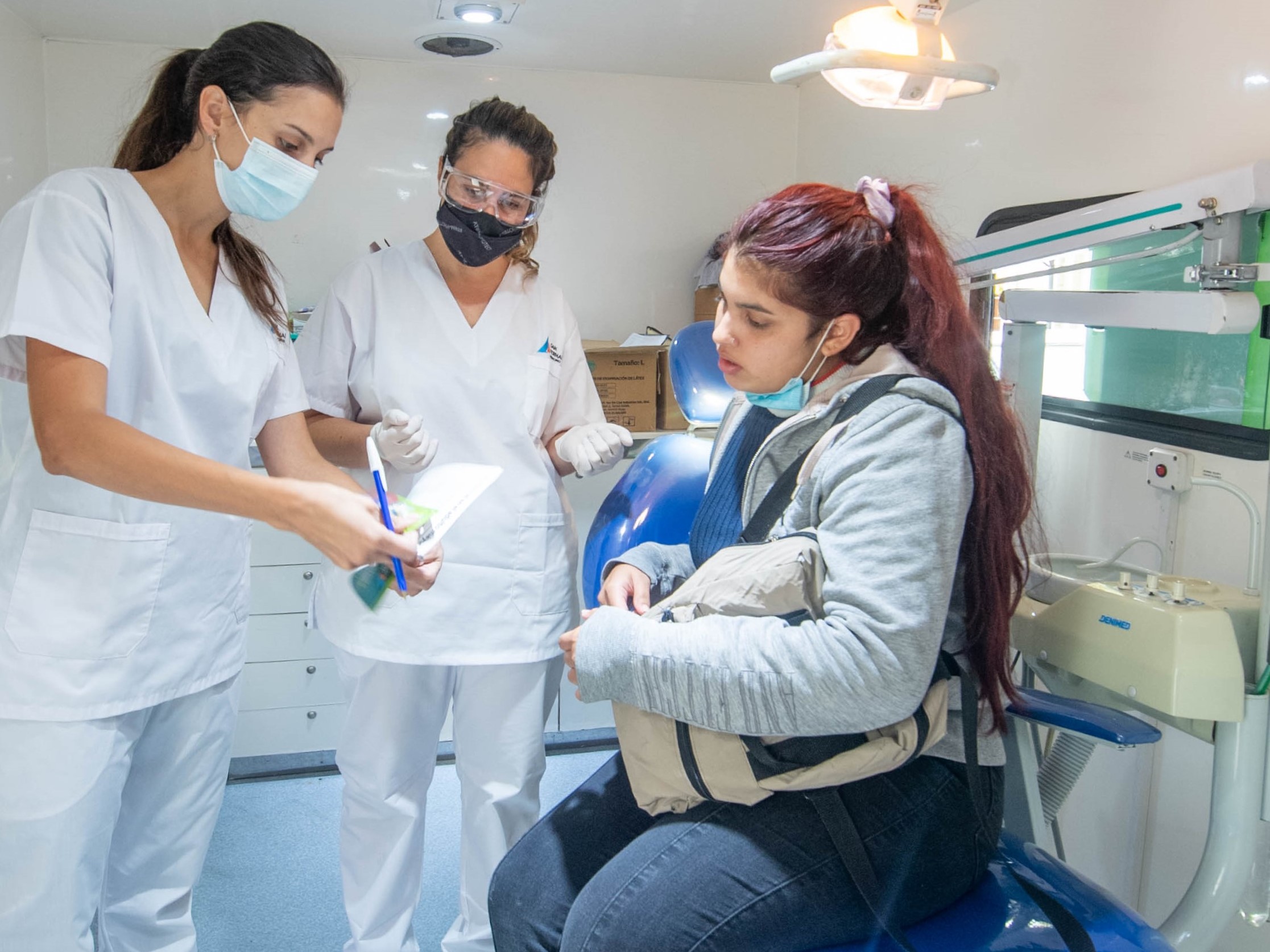En el Móvil Odontológico municipal que se instaló en la Plaza Mitre, profesionales atendieron a niños y adultos para controles bucodentales gratuitos, incluyendo derivaciones a Centros de Salud para tratamientos, y enseñaron la técnica correcta de higiene oral entregando nuevos cepillos de dientes.