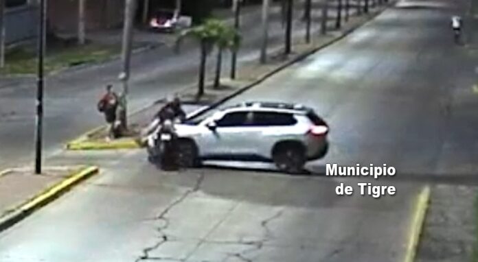 En General Pacheco, las cámaras del Centro de Operaciones Tigre (COT) detectaron un siniestro vial entre una moto y una camioneta: el conductor de este último conducía bajo los efectos de drogas.