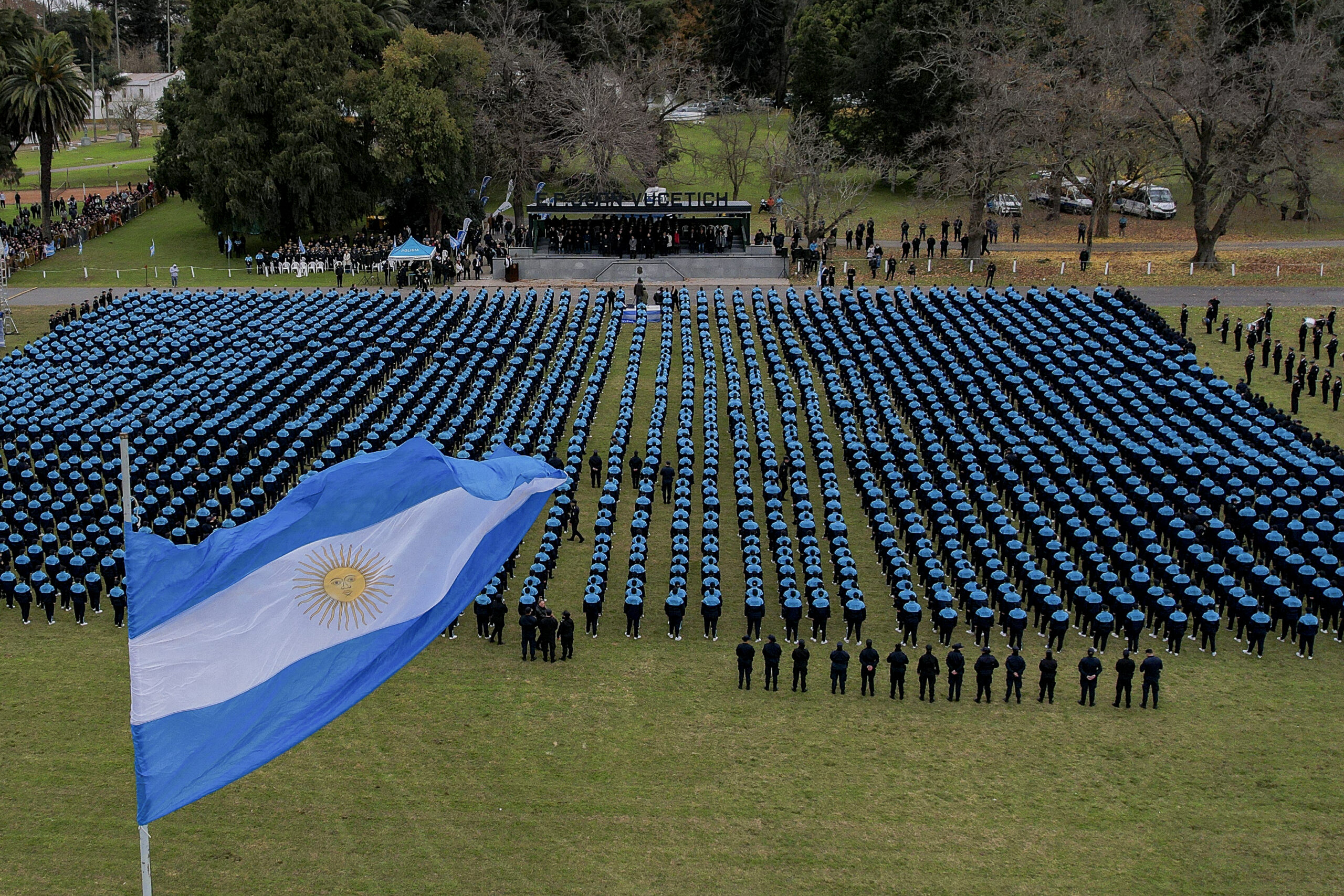 El gobernador de la provincia de Buenos Aires, Axel Kicillof, encabezó este lunes junto al ministro de Seguridad, Javier Alonso, el acto de jura de fidelidad a la bandera nacional de 2.736 cadetes que finalizarán este año el proceso de formación.
