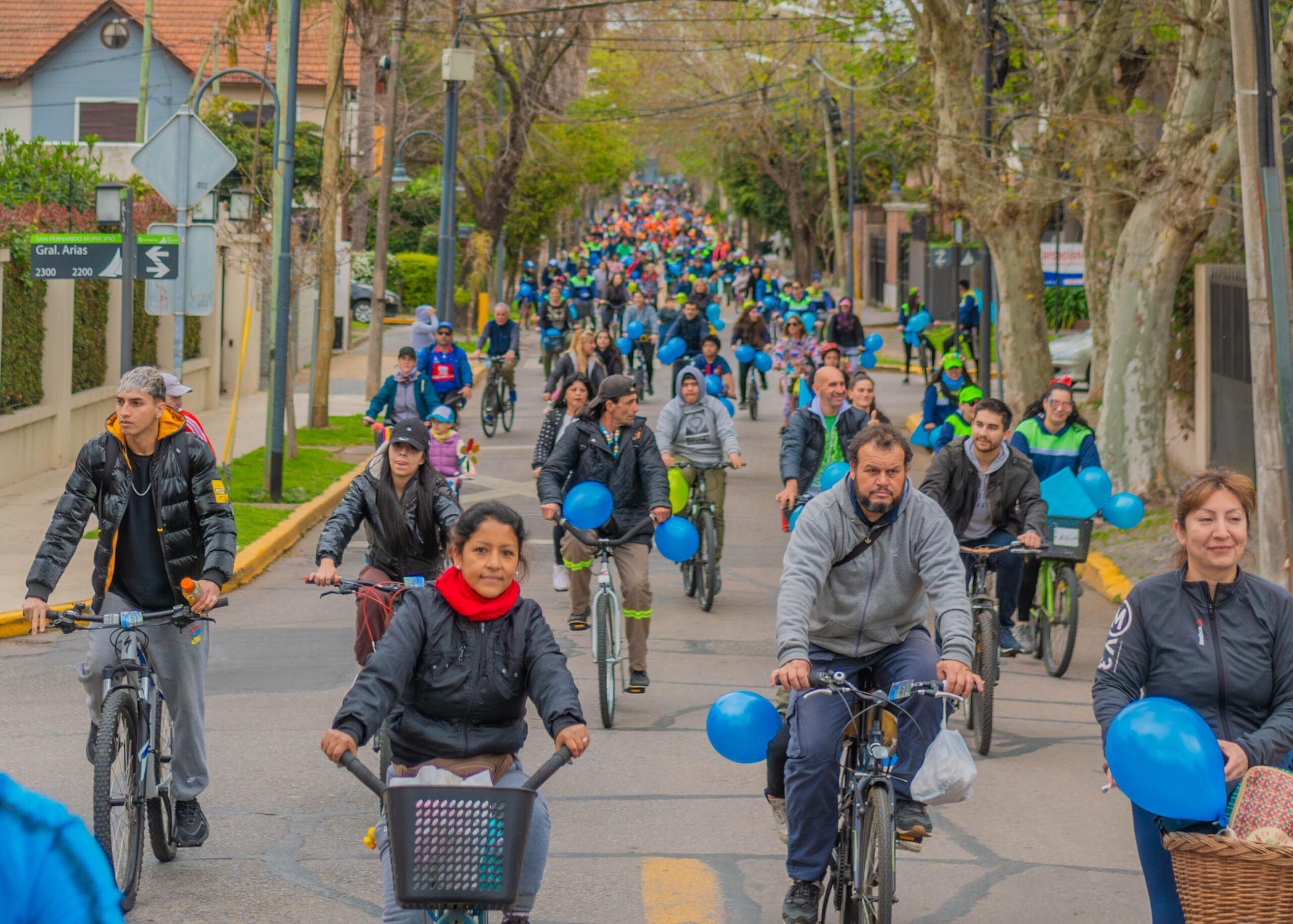 La mañana comenzó reuniendo a todos en las plazas ‘Mitre’ y ‘Dorrego’, y en los Polideportivos N°1, N°2, N°5, N°6, N°7, N°8 y N°9, cada grupo identificado con globos de diferentes colores. Hubo premios para bicis decoradas y familias disfrazadas. Luego partieron todos en caravana hasta el Parque Náutico, donde esperaban más profesores de Polideportivos con música, baile y sorteos de bicicletas.