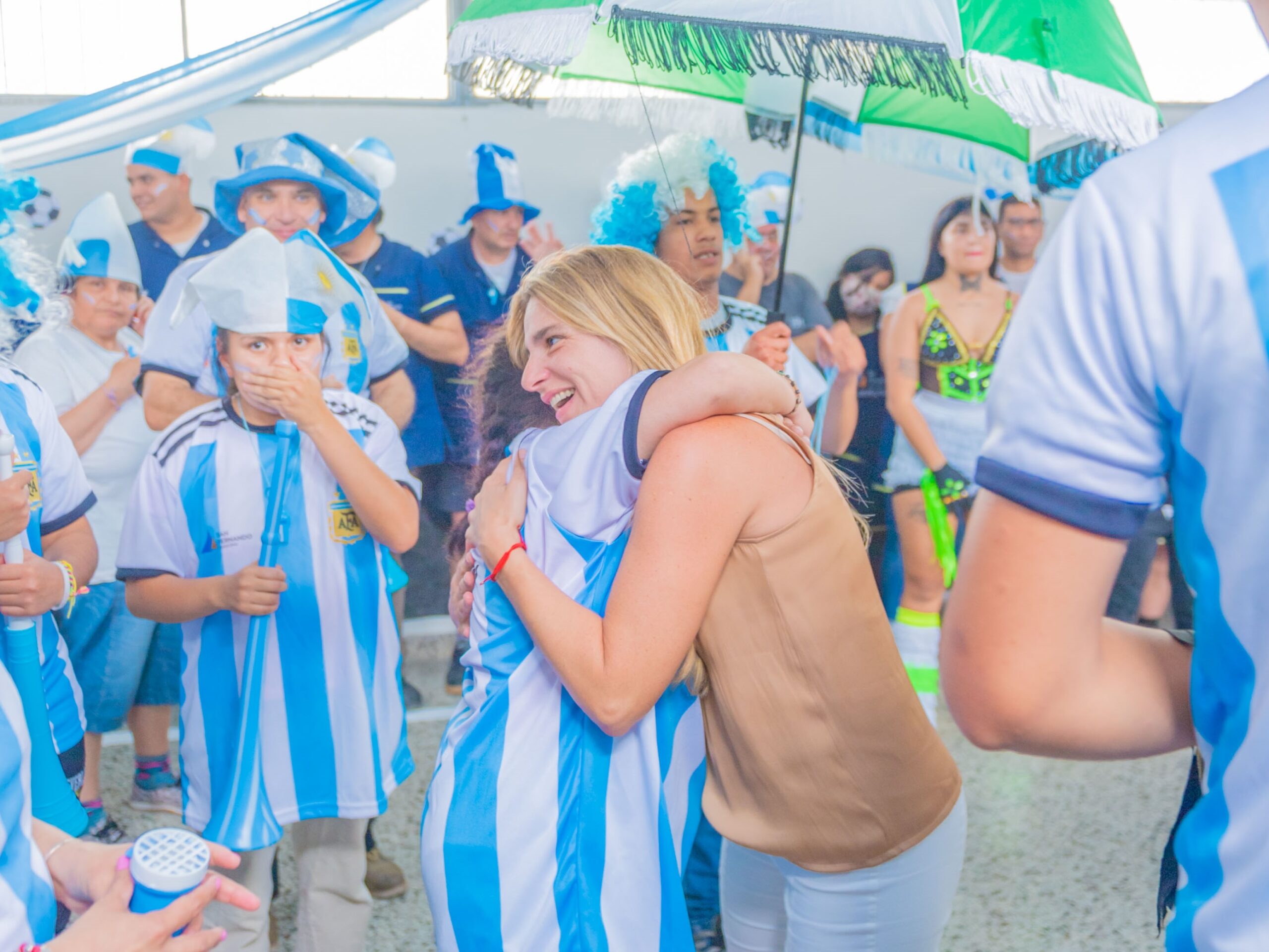 La Secretaria Eva Andreotti y el Secretario de Deportes, Carlos Traverso, acompañaron en el festejo “mundialista” a los grupos del Municipio dedicados a la contención, capacitación e integración al trabajo de personas con discapacidad y de los jóvenes de Casa de Día, en recuperación de adicciones. “Estamos muy felices; agradecemos a ‘Los Tachitos’ que se sumaron al festejo junto a los chicos del Taller Protegido y de Casa de Día que también participaron de esta previa”, dijo la funcionaria.