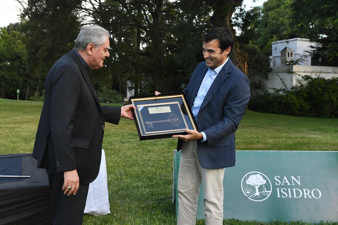Esta tarde, el intendente de San Isidro, Ramón Lanús, le entregó la llave de la Ciudad de San Isidro al presidente de la Conferencia Episcopal Argentina, Oscar Ojea, en honor a su destacada trayectoria como Obispo.