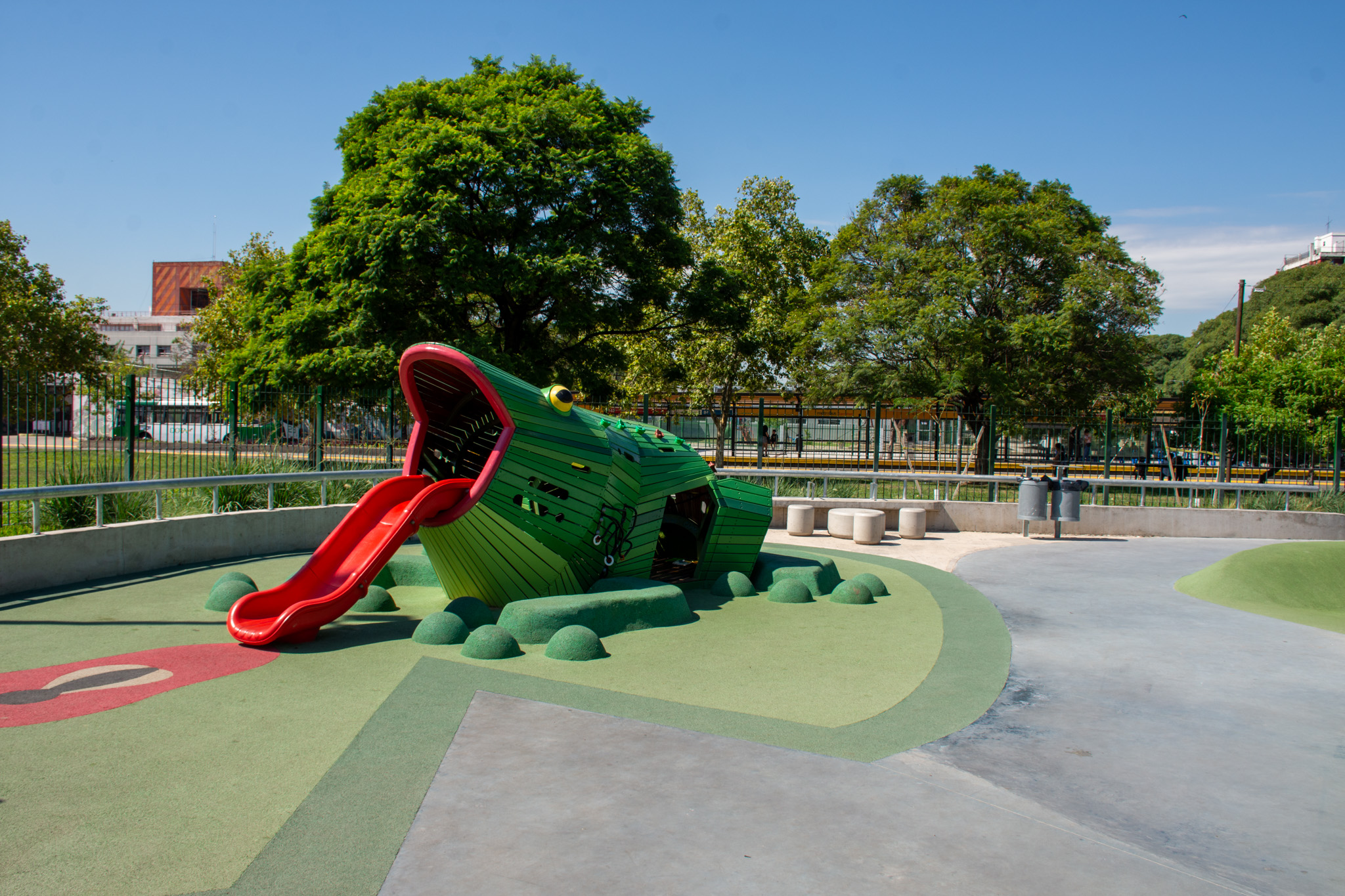 Para brindar mayor seguridad y delimitar las áreas de recreación, se colocaron rejas alrededor del patio de juegos y el canil. Además, se construyó una nueva caminería de cemento peinado e intertrabado, facilitando el acceso y la circulación dentro del parque. Como parte del plan de mejoras, se reacondicionó el actual skatepark, garantizando un espacio óptimo para los amantes de esta disciplina.