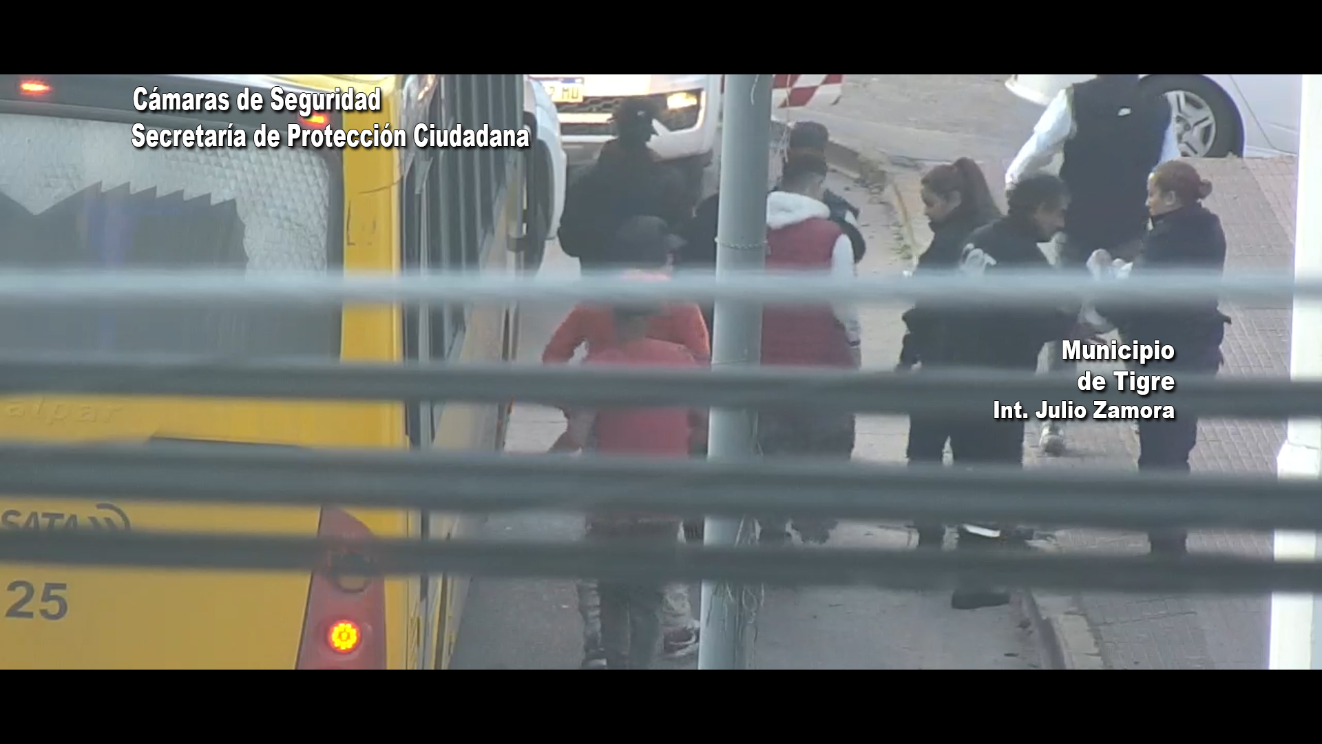 Las cámaras del distrito captaron el momento en el que un grupo de jóvenes se acercaba a la parada de colectivos de Ruta 9 y Chilavert para robarles a cinco personas. Tras cometer el ilícito, huyeron a bordo de un autobús, pero fueron interceptados por las autoridades a los pocos metros.