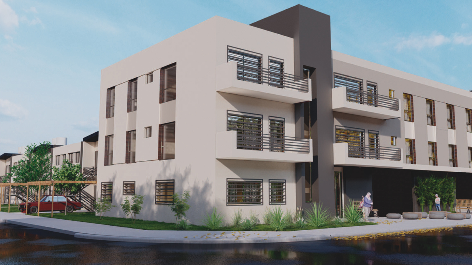 Las viviendas del complejo tienen distintas tipologías con uno, dos y hasta tres dormitorios, con servicios completos.