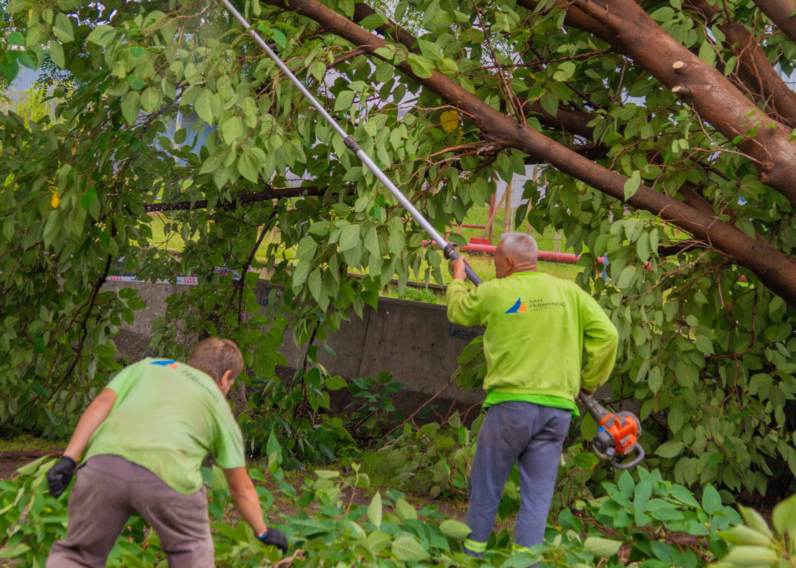 Del operativo participaron cuadrillas y equipos de las Secretarías de Espacios Verdes, Obras Públicas e Higiene Urbana; trabajando en conjunto con Defensa Civil y el sistema completo de Protección Ciudadana, con la colaboración de Bomberos Voluntarios y otras fuerzas de acción ante emergencias.