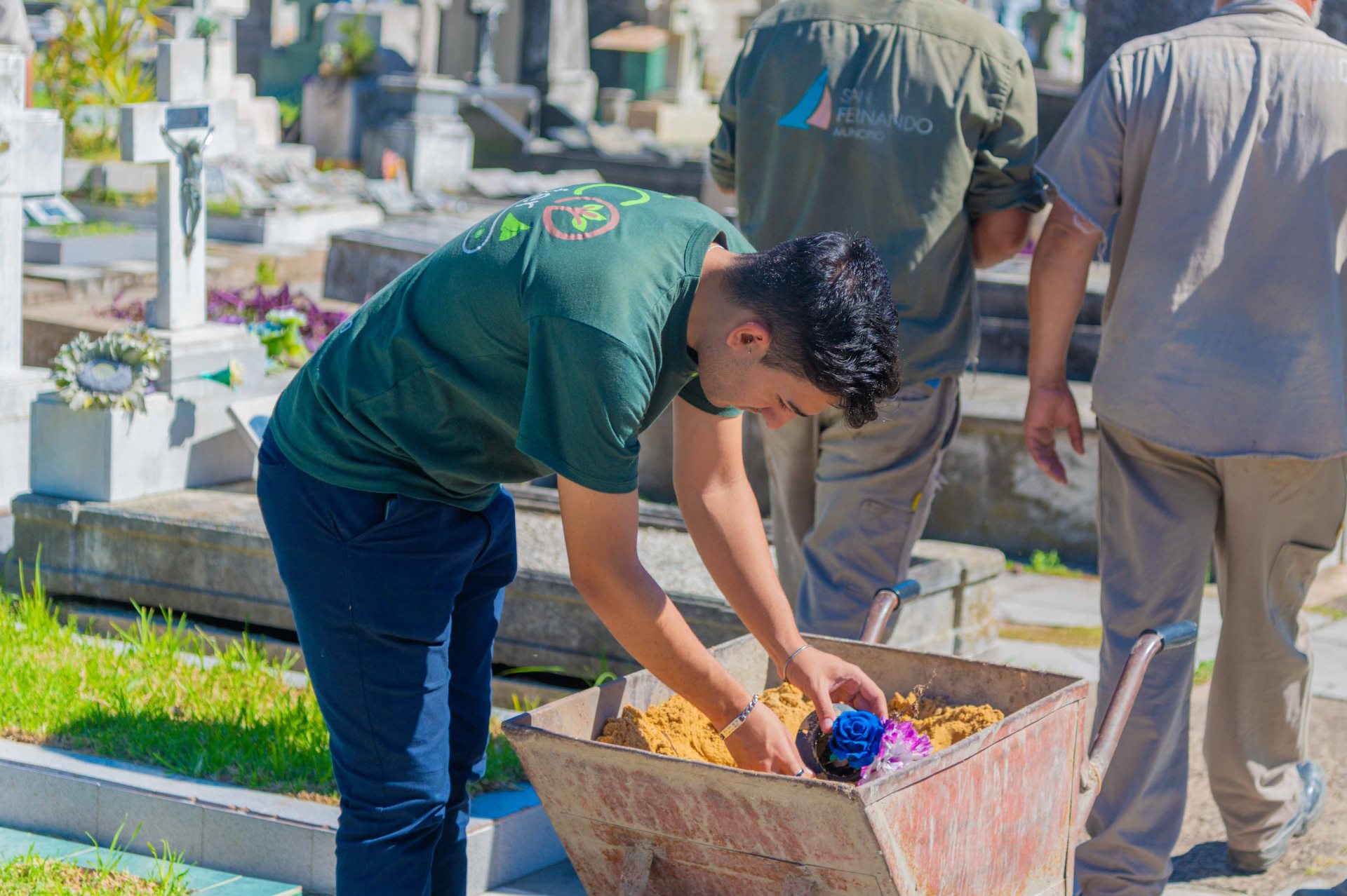 En tanto, el Concejal Ignacio Pérez agregó: “Aquí en el Cementerio Municipal de San Fernando iniciamos una campaña para combatir el dengue; éste es un lugar donde se puede criar el mosquito Aedes, por la cantidad de floreros con agua que pueda haber; entonces, todos los años hacemos esta campaña pidiendo a los vecinos que utilicen arena en vez de agua; y el personal del cementerio reemplaza el agua de todos los floreros con arena para impedir el desove del mosquito. Los familiares que vienen a visitar el cementerio tienen a su disposición en los tres ingresos contenedores con bolsitas con arena, que les brindamos sin costo para reemplazar el agua, para que entre todos sigamos combatiendo el dengue”.