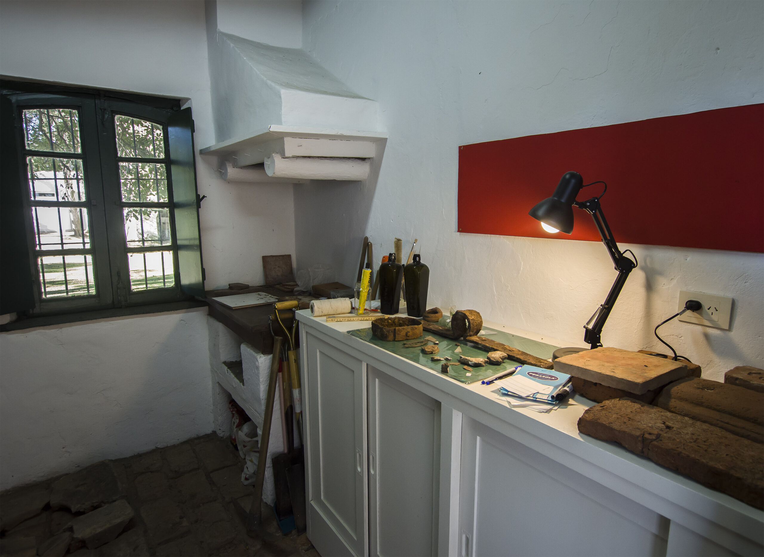 La sala central y la galería de la Casa de los Chacareros permiten transitar en forma dinámica los procesos del trabajo arqueológico. Las salas laterales hacen foco en la exhibición, y en la galería se encuentra una larga mesa para hacer remontaje. Un momento para rearmar piezas de platos rotos.