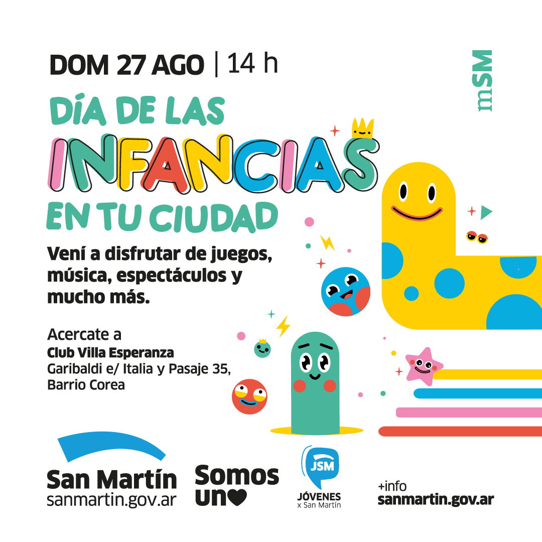 Como cada año, el Municipio de San Martín organizó una gran celebración por el Día de las Infancias en plazas, parques y espacios públicos de todos los barrios, que tendrá lugar este domingo 27, desde las 14, tras la reprogramación por cuestiones climáticas.