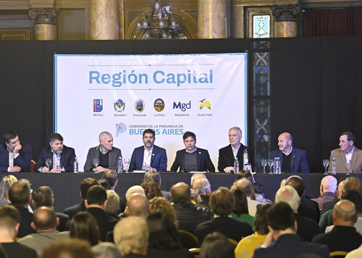 El gobernador de la provincia de Buenos Aires, Axel Kicillof, encabezó este jueves en el Salón Dorado de la Municipalidad de La Plata el acto de firma de un convenio para la conformación del Consorcio de Gestión y Desarrollo de la Región Capital Ampliada, un ámbito de trabajo y articulación con el objetivo de delinear estrategias conjuntas de desarrollo para los municipios de la zona.