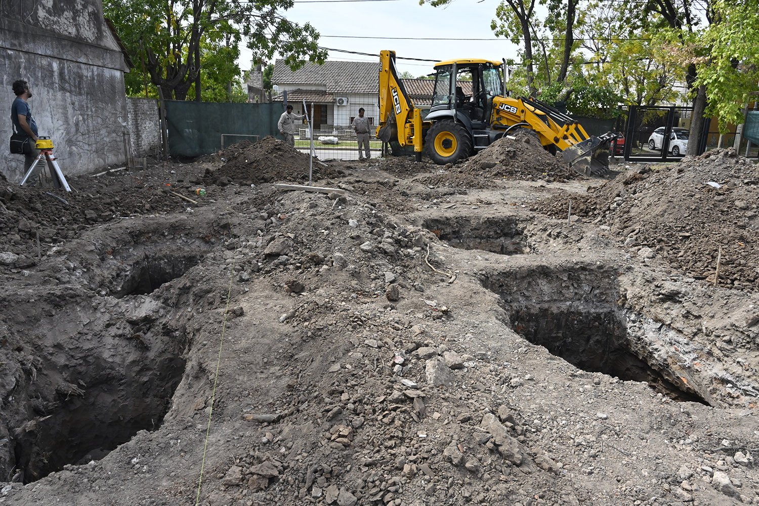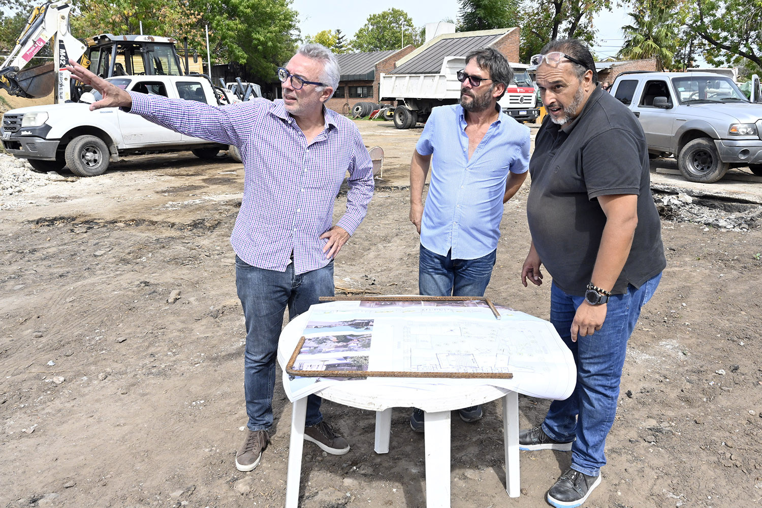 Durante la recorrida, el intendente dialogó con los encargados de la obra y revisó los planos. Actualmente, los trabajos están orientados a movimientos de suelo, excavaciones y la construcción de la base de la superficie.
