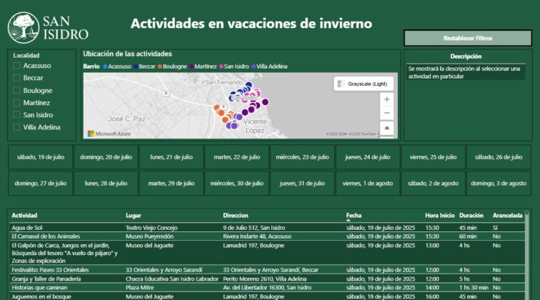 La agenda completa, con la oferta pública y privada de más de 130 actividades en total, se puede ver en detalle en https://www.sanisidro.gob.ar/vacacionesdeinvierno donde se puede filtrar por día o localidad.