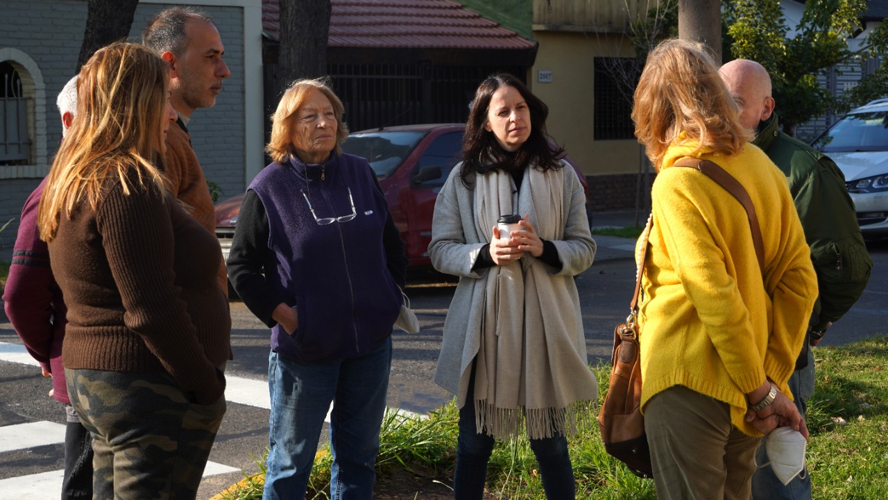 La intendenta de Vicente López, Soledad Martínez, supervisó los trabajos de mejora de Espacio Público en Carapachay y dialogó con vecinos de la zona.