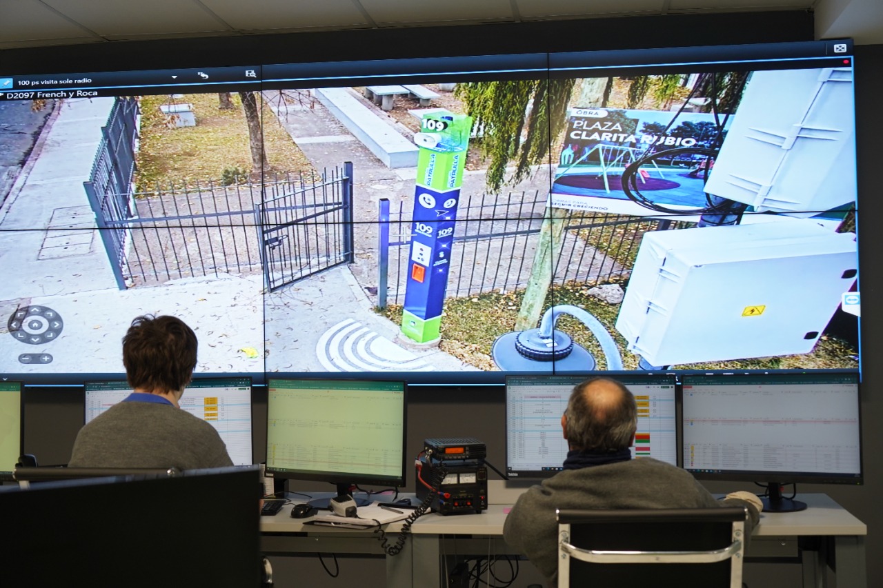 Al pulsar el botón de alarma ubicado en el tótem el vecino se conecta instantáneamente con personal del Centro de Monitoreo Urbano y desde la central dan aviso a la patrulla con una alerta, de modo que pueda detectar rápidamente el lugar al que tiene que dirigirse.